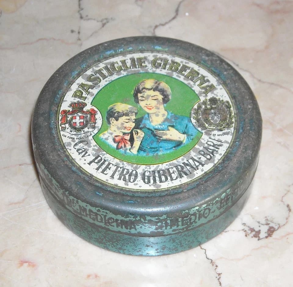 Astuccio In Latta Per Pastiglie Giberna, Bari Medicina E Araldica