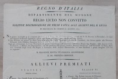 Macerata, Raro Antico Foglio Volante: Lensi, Musone, Scuole E Allievi Premiati Al Liceo
