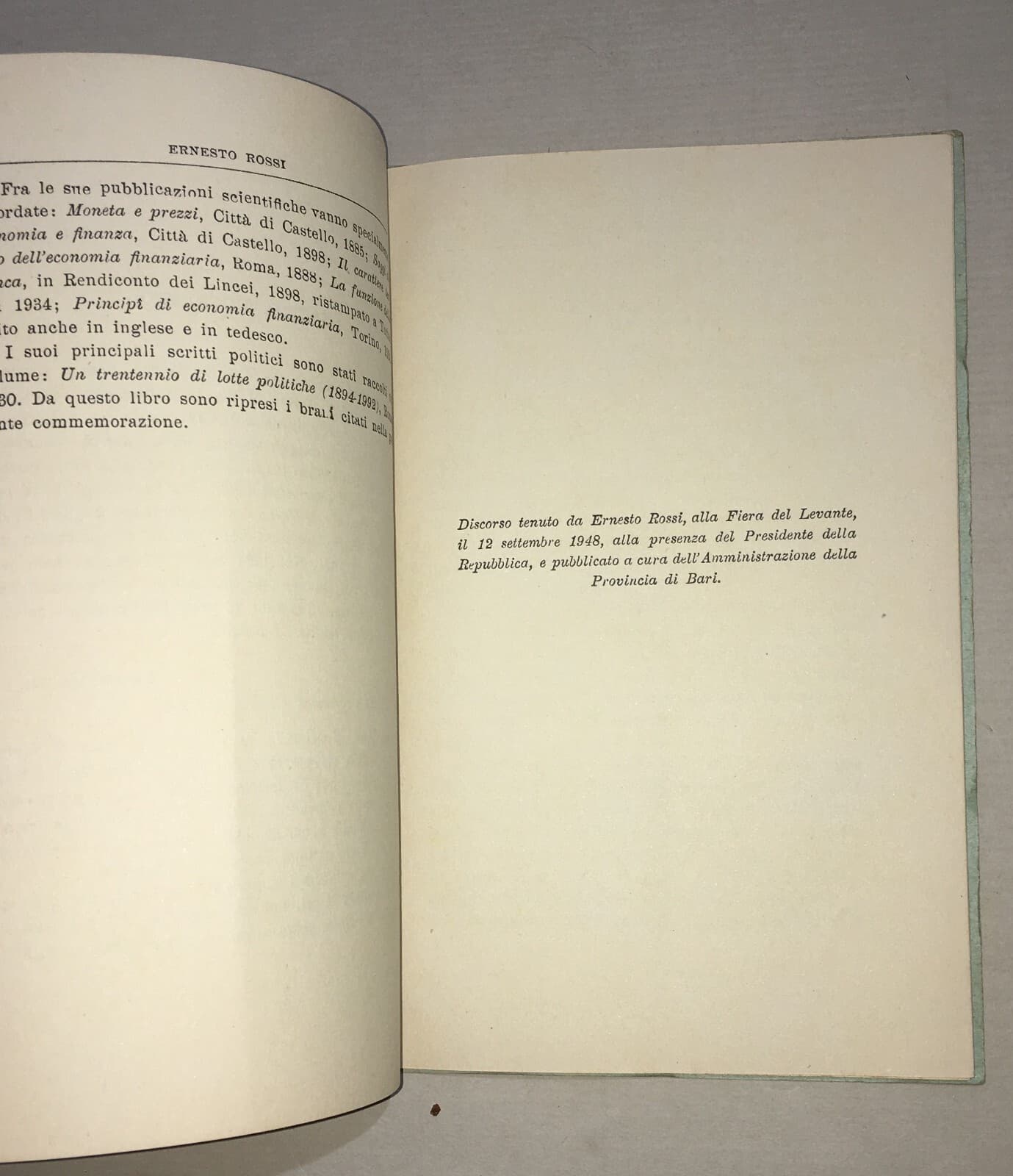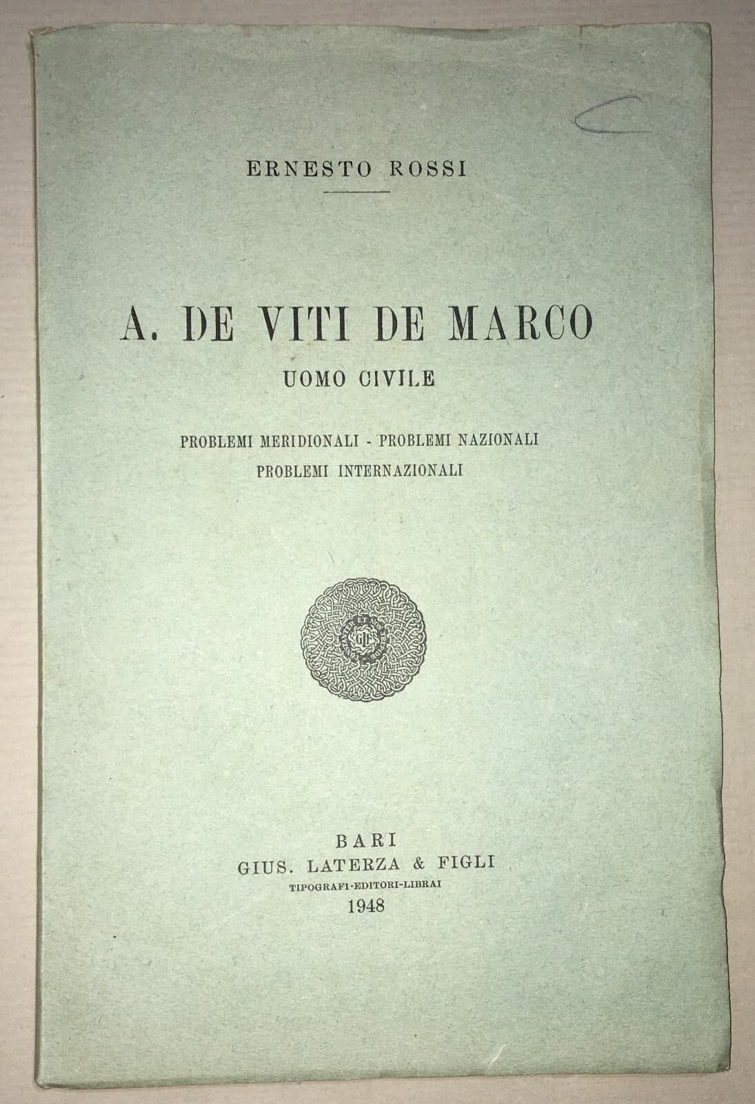 Puglia, Meridione, Meridionalismo: Antonio De Viti De Marco, Politica Ed Economia, 1948