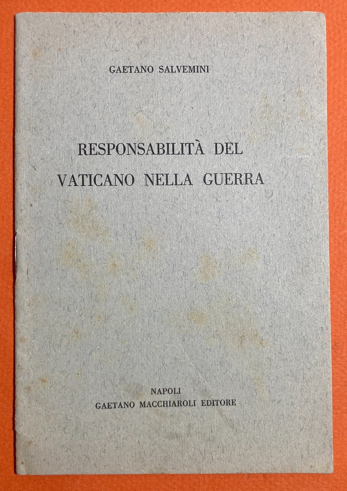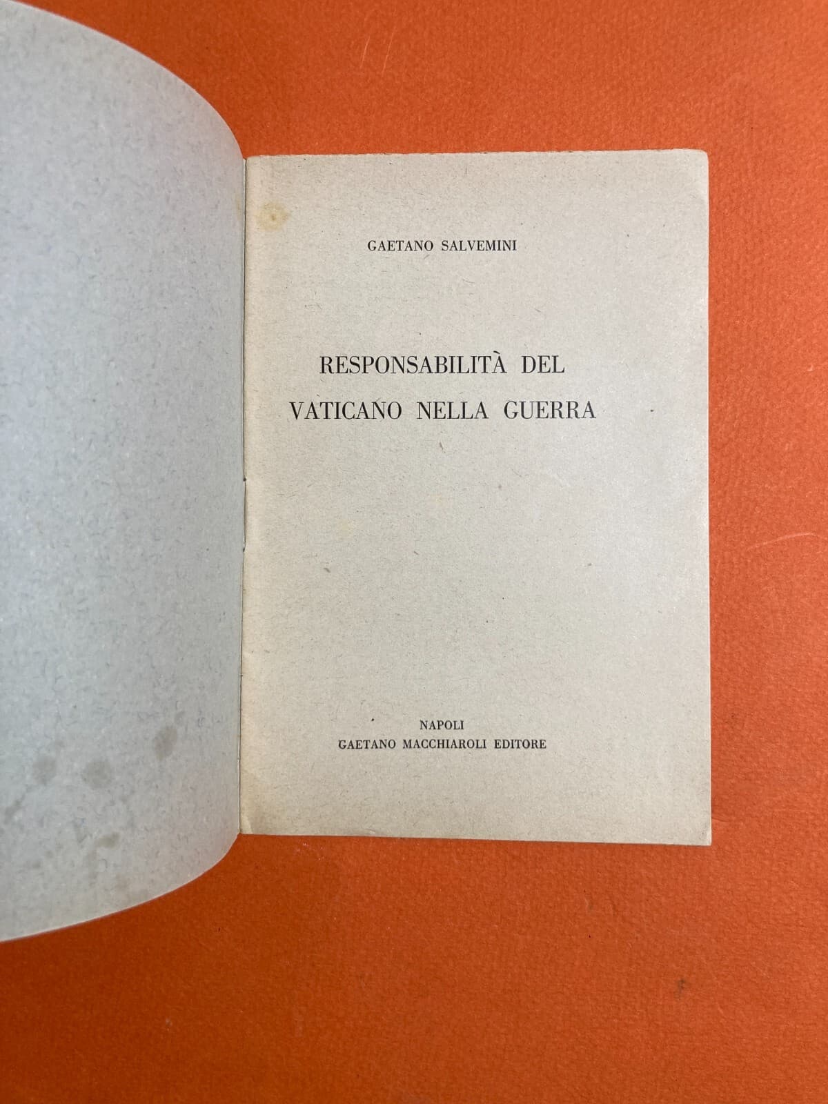 Gaetano Salvemini. Responsabilità Del Vaticano Nella Guerra. Napoli, Macchiaroli Editore.