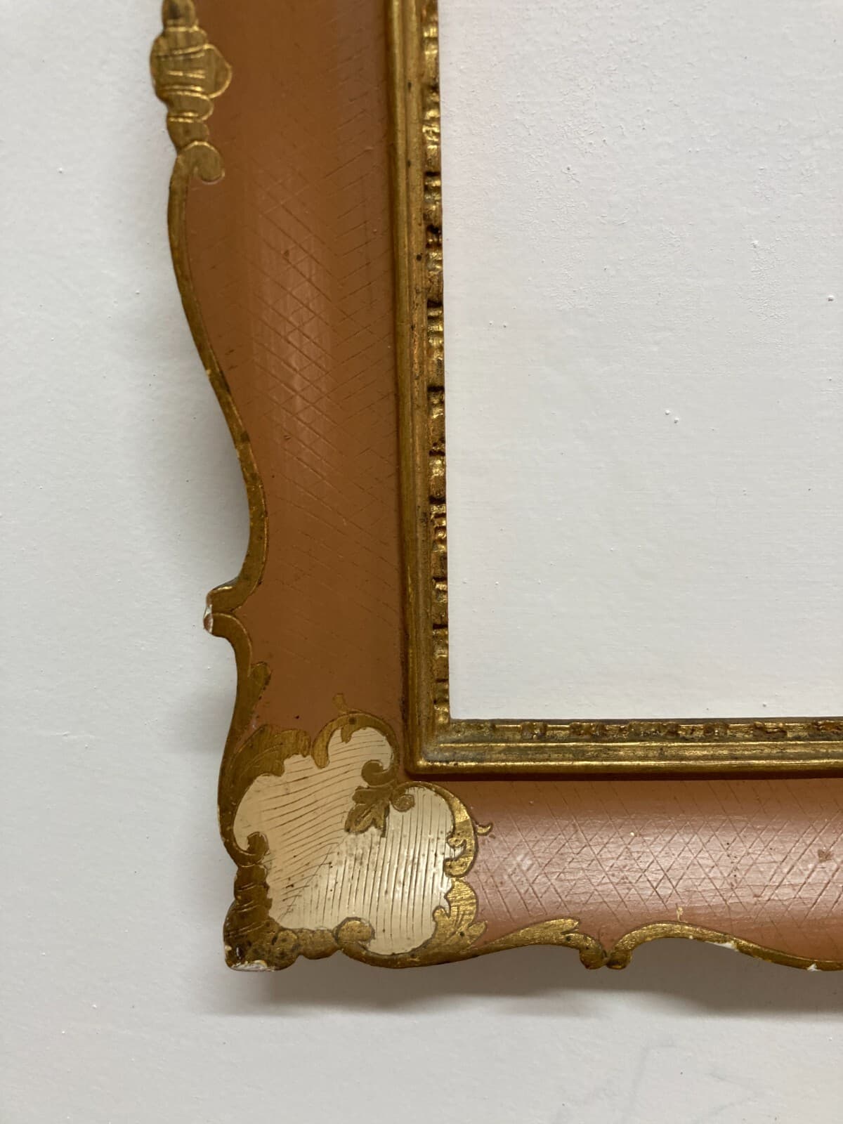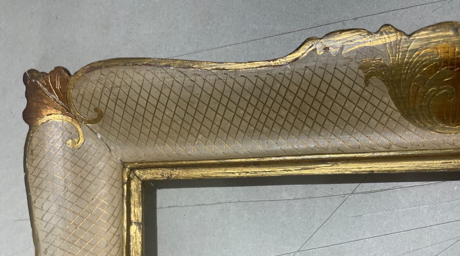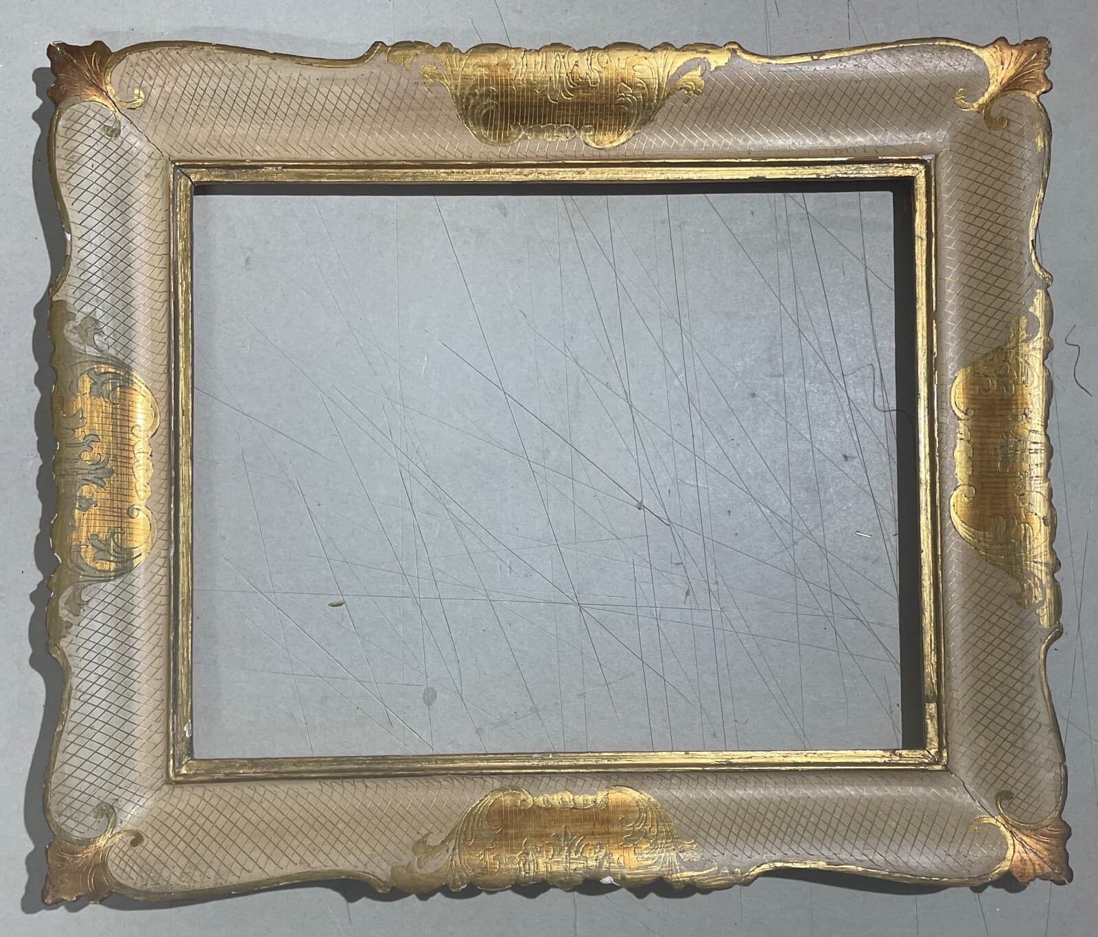 Inusuale Cornice d'Epoca Laccata In Oro Brunito