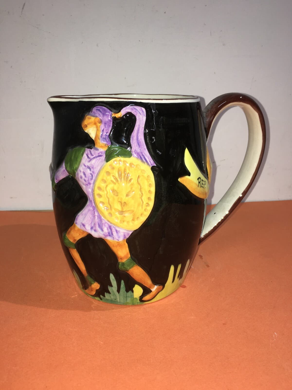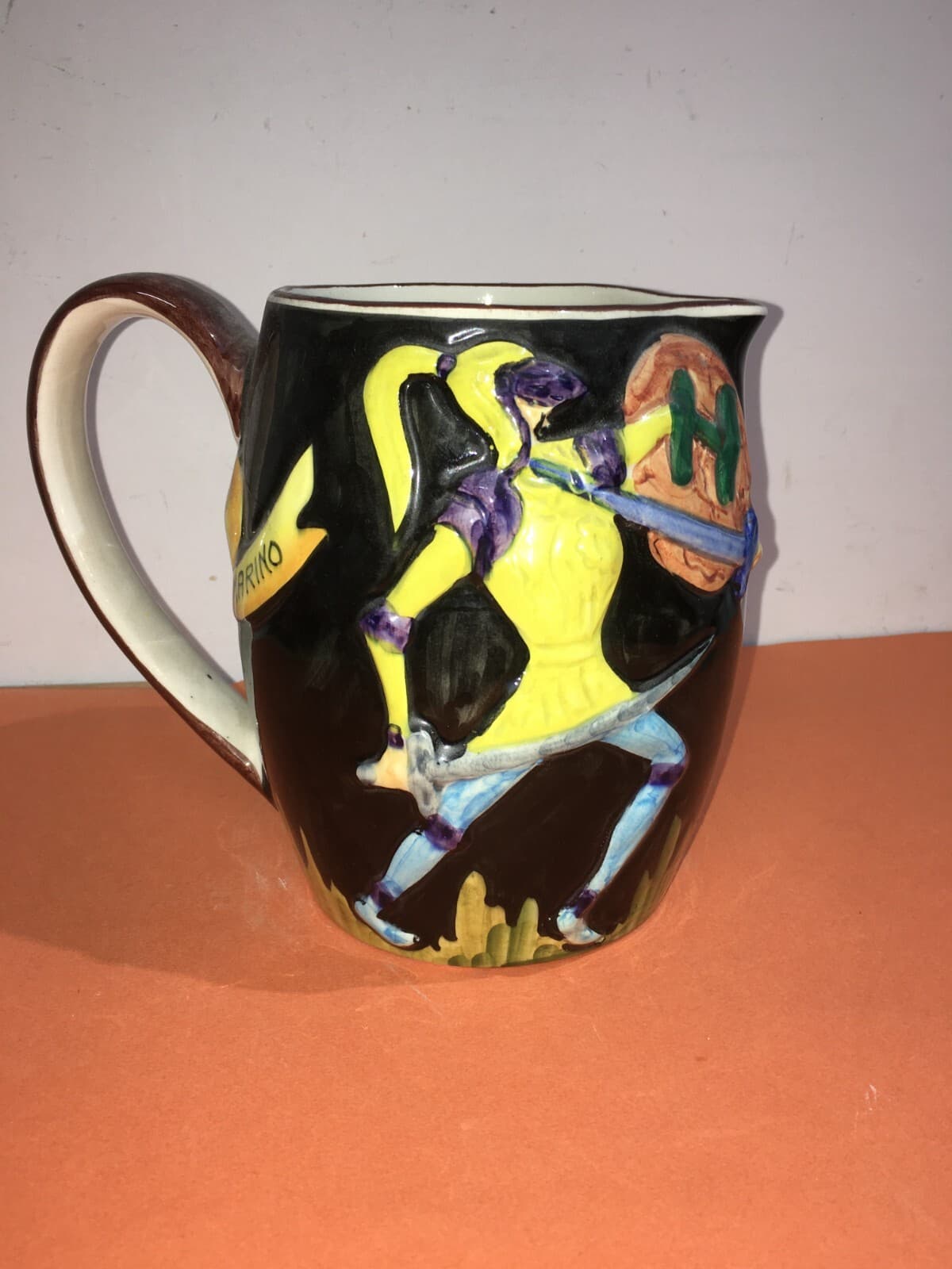 Ceramica Titano: Brocca Decorativa Con Scena Di Duello Medievale