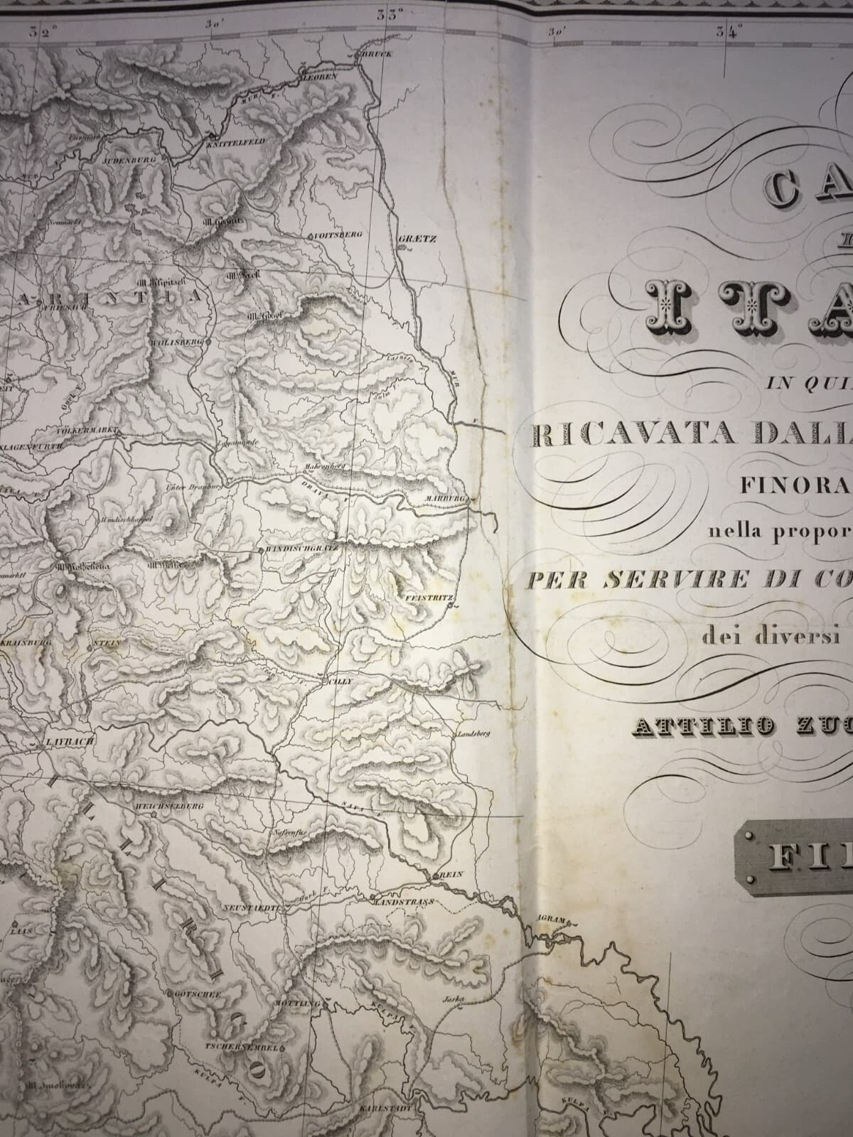 Antica Cartografia: Trieste, Capo d'Istria, Illiria, Carinzia Zuccagni Orlandini, 1842