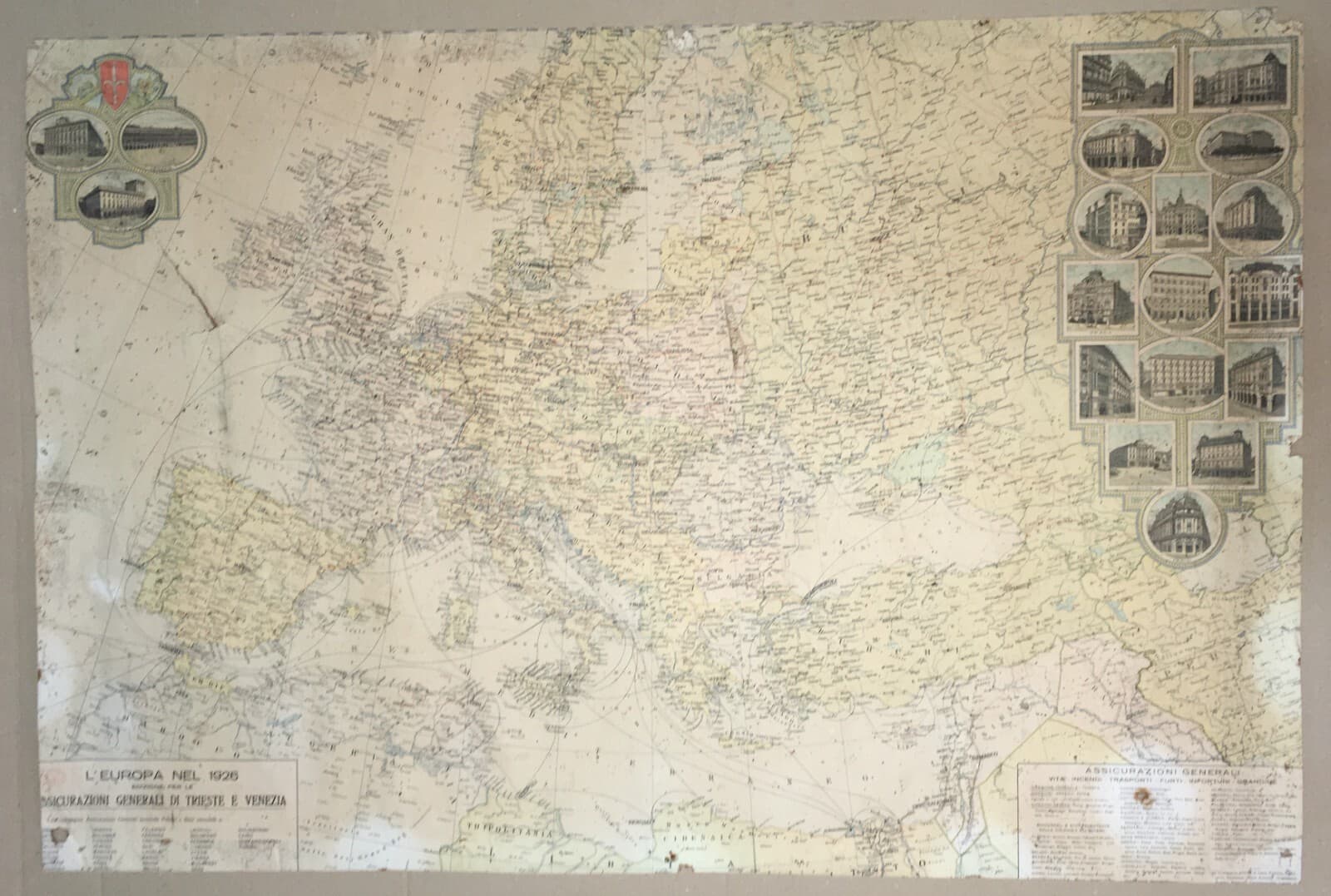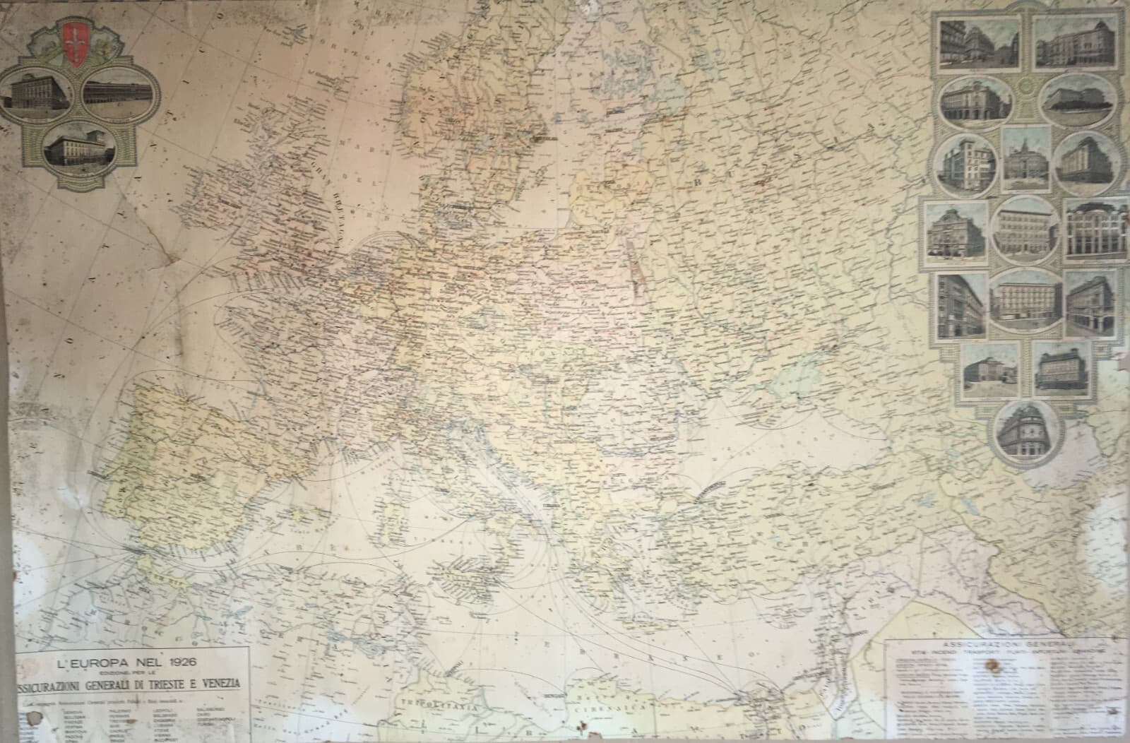 Cartografia Europea: L'Europa Nel 1926 Assicurazioni Generali