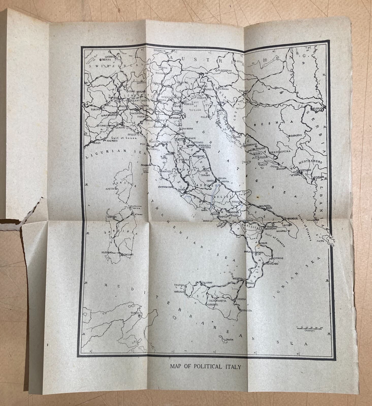 Grande Mappa Geografica, Geofisica E Ipsometrica d'Italia, 1921