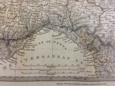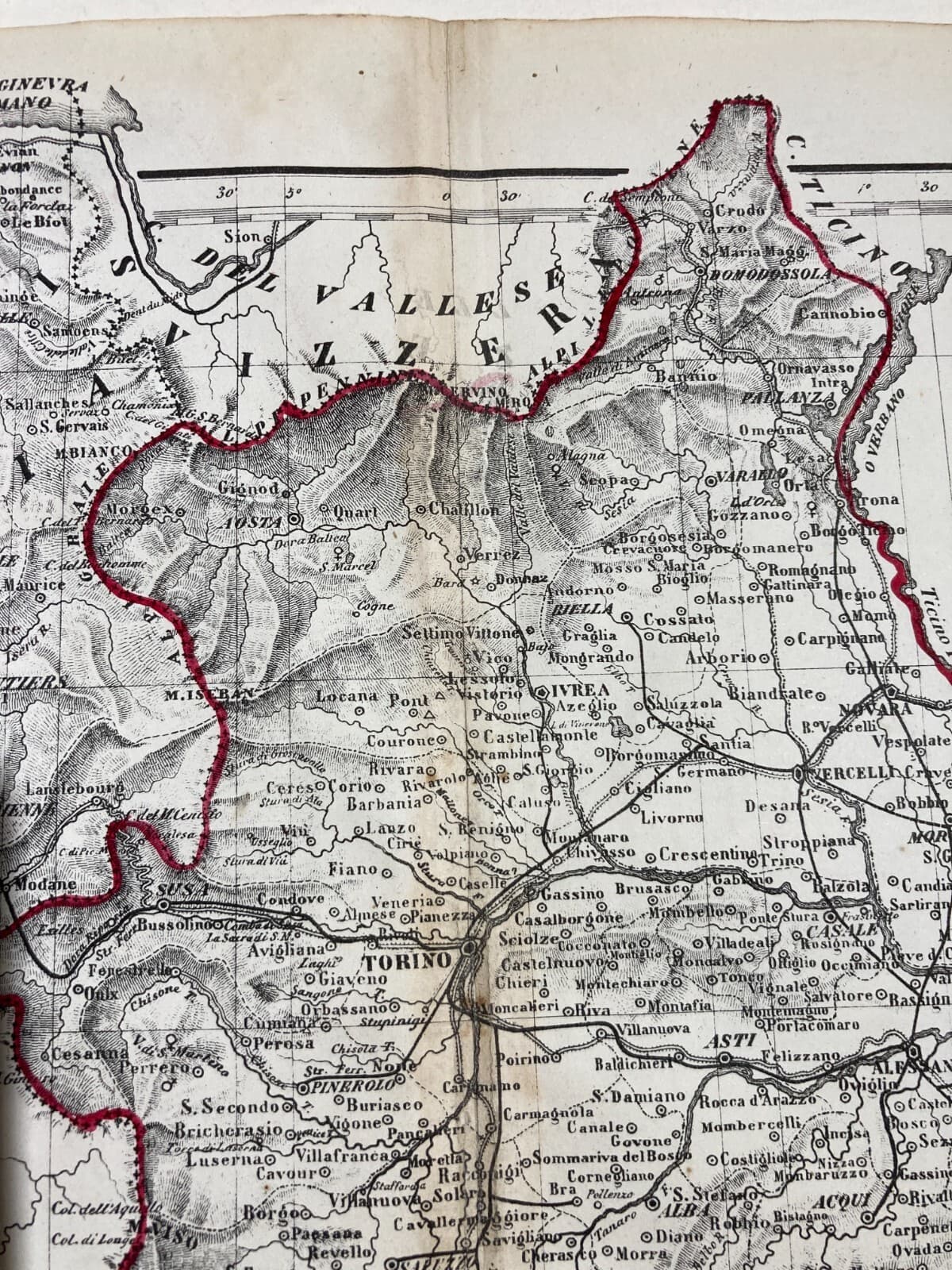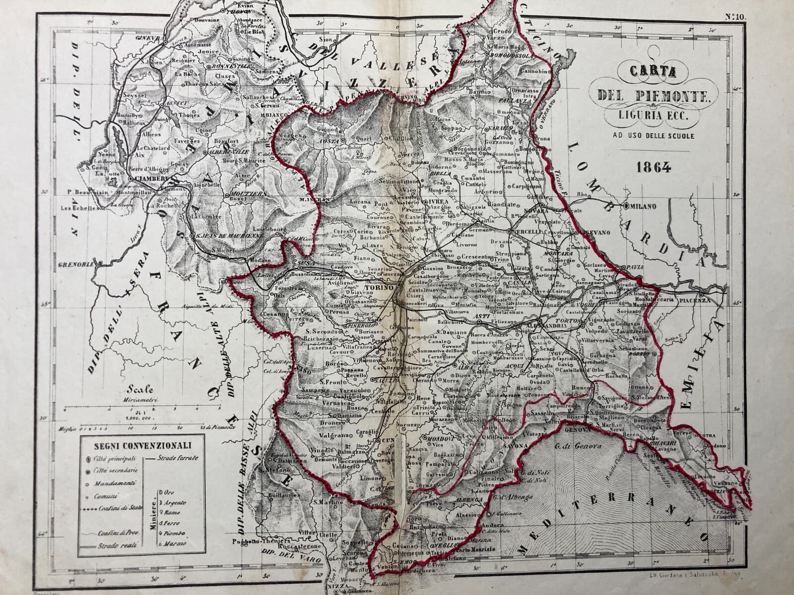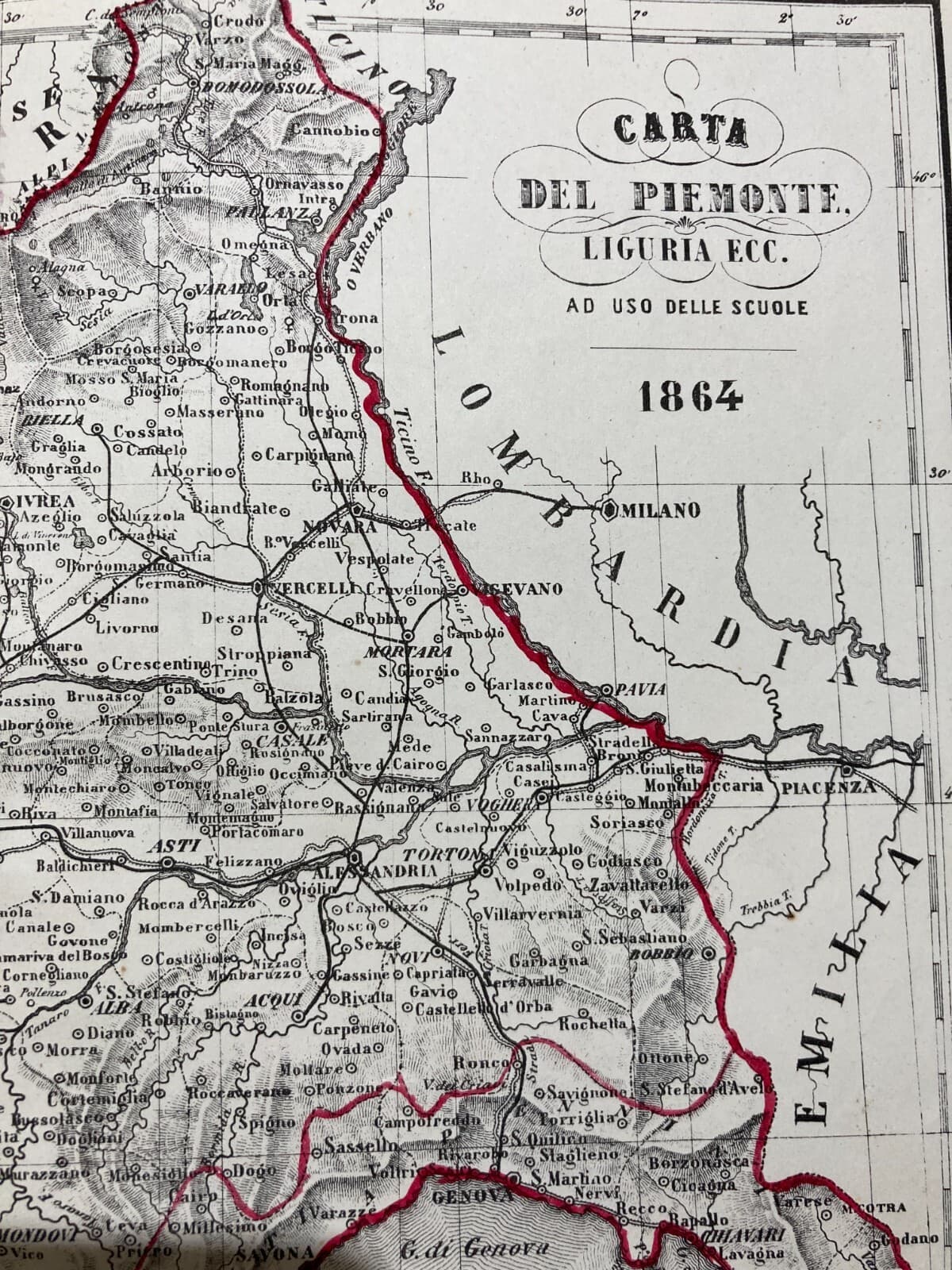 Antica Cartografia Piemonte, Liguria, Nizza, Ginevra, Milano, Piacenza, Torino 1864