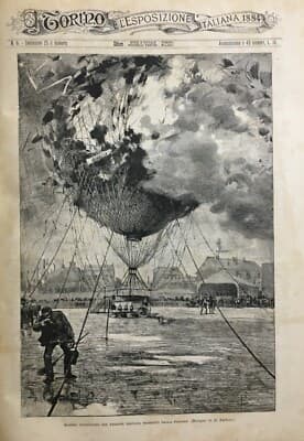 Aerostatica: Pallone Aerostatico E Mongolfiera Colpiti Da Fulmine. Antica Stampa Del 1884 Di D. Paolocci