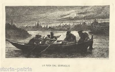 Carlo Felice Biscarra, La Fuga Dal Serraglio, Rara Incisione Dell'Ottocento