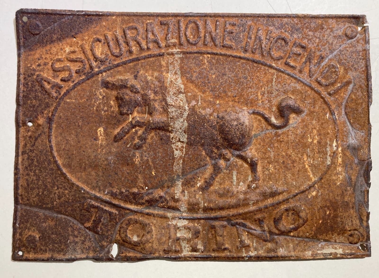 Torino: Targa Pubblicitaria Antica Assicurazione Incendi In Latta Con Stemma Del Toro