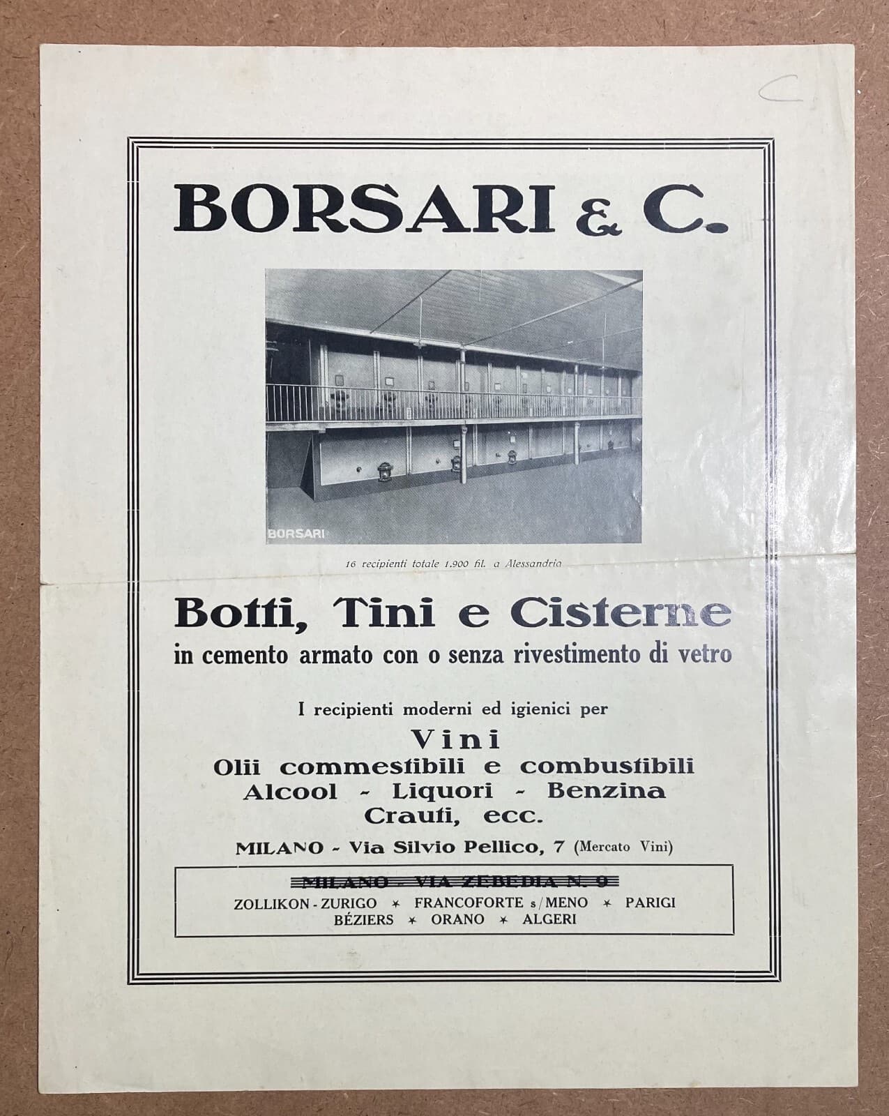 Borsari & C. Milano: Botti E Cisterne In Cemento Armato, Pieghevole Pubblicitario