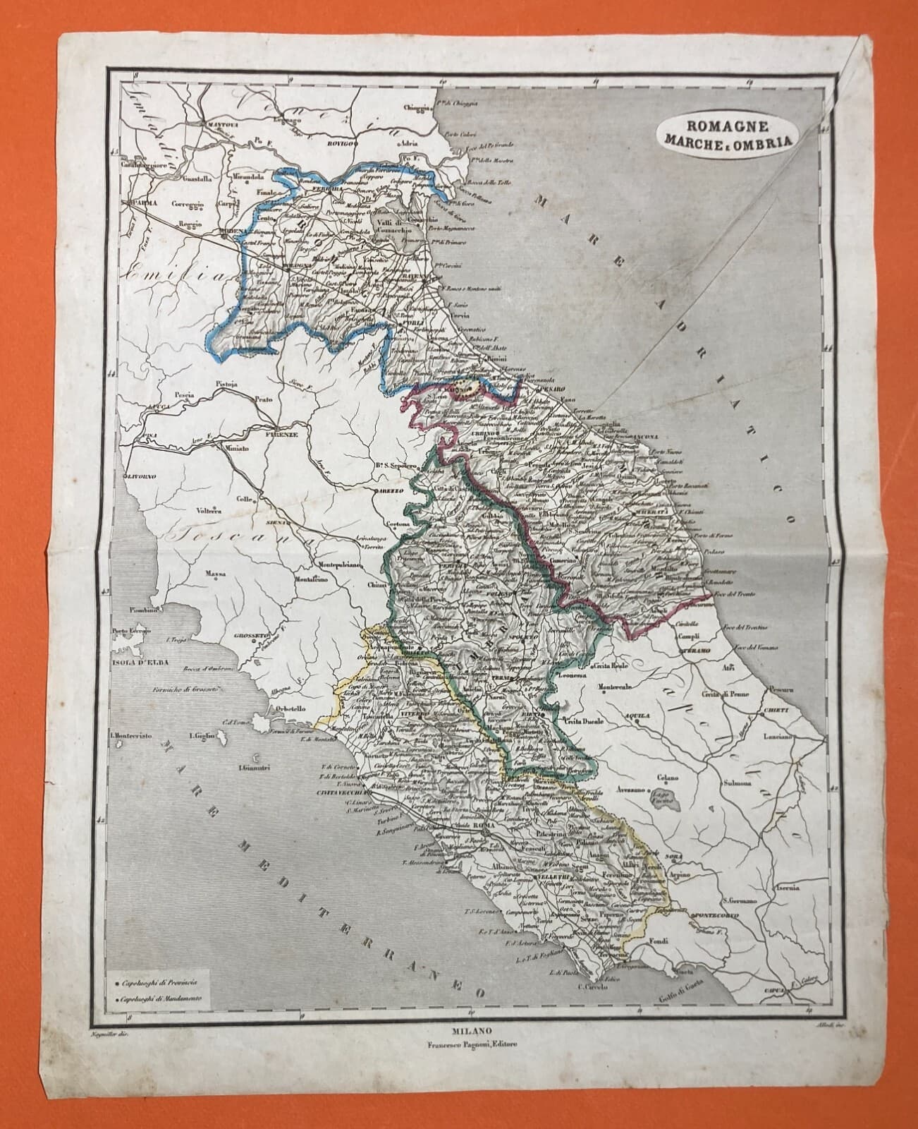 Antica Cartografia: Romagna, Marche, Umbria, Lazio. Allodi, Naymiller, Pagnoni, XIX Secolo