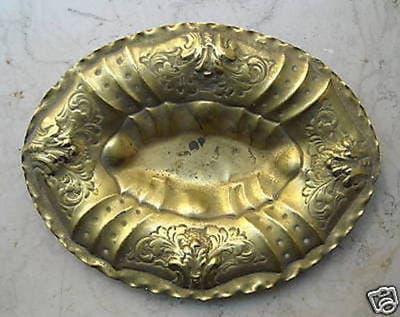Vassoio Decorativo In Ottone Sbalzato, Centrotavola Degli Anni '30