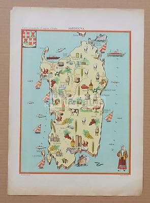 Antica Grande Mappa Delle Regioni d'Italia: Sicilia, Sardegna, Corsica E Territori Pre Unitari