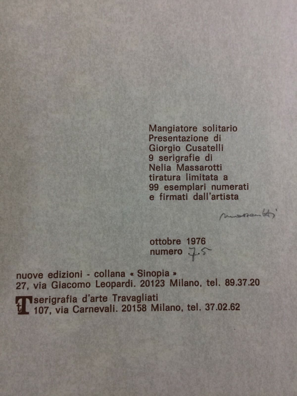 Nelia Massarotti, Mangiatore Solitario. Raccolta Di 9 Serigrafie Originali, 1976