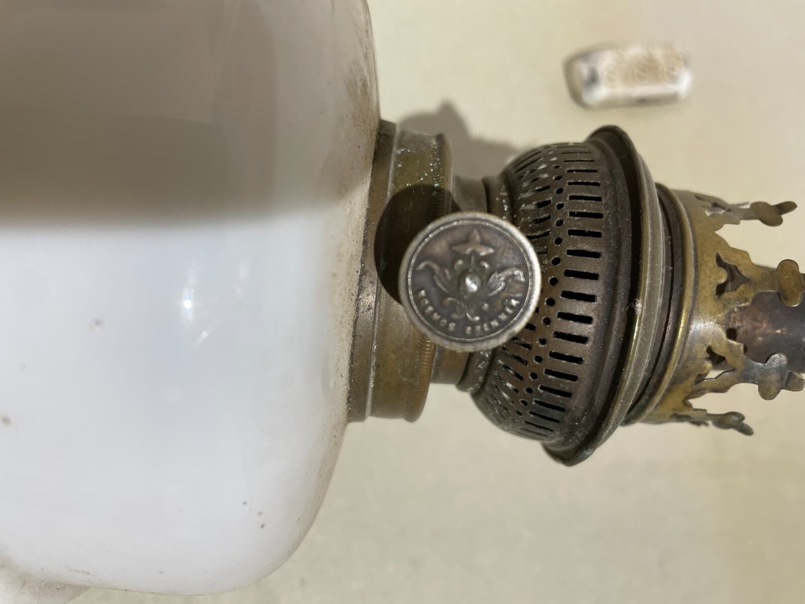 Lampada Antica In Vetro Opaline Bianco Kosmos Brenner