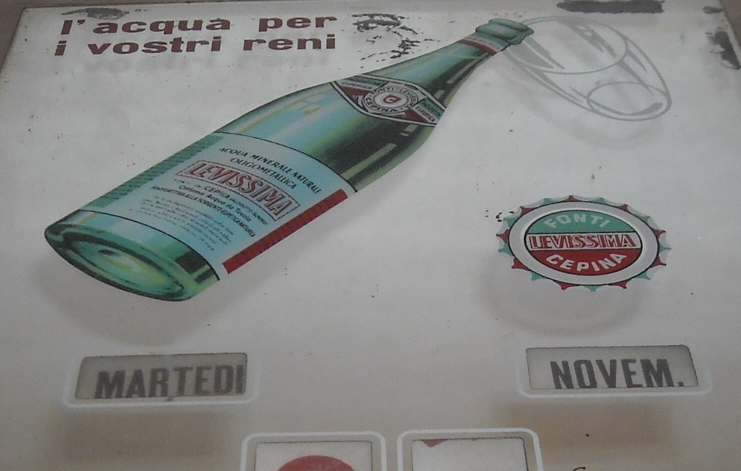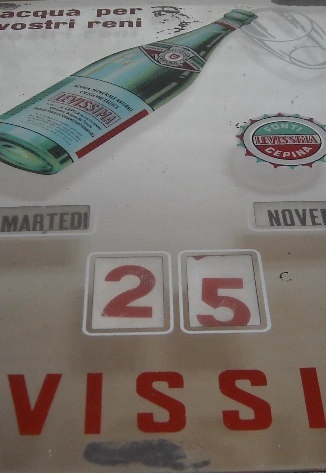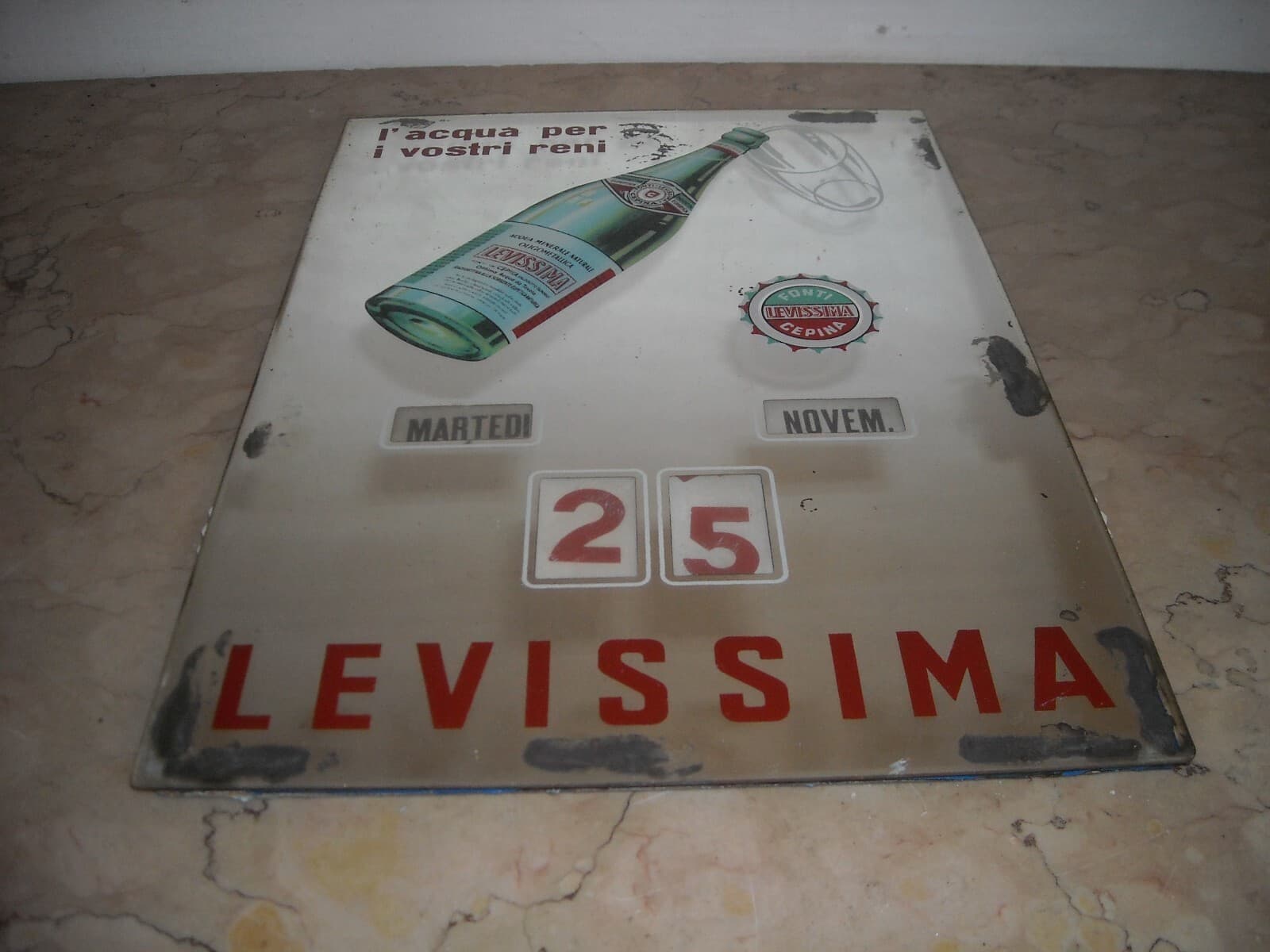 Specchio Pubblicitario E Calendario d'Epoca Acqua Minerale Levissima, Cepina