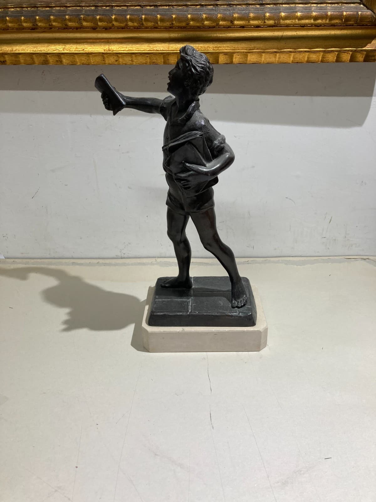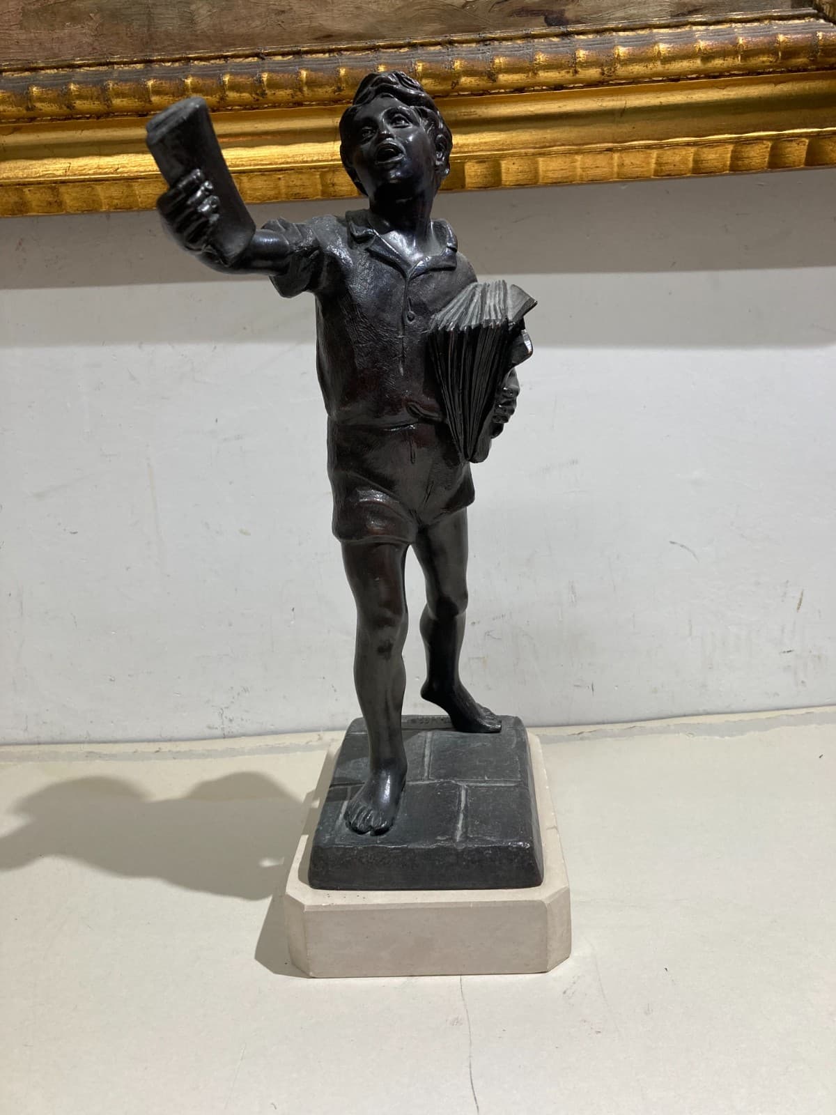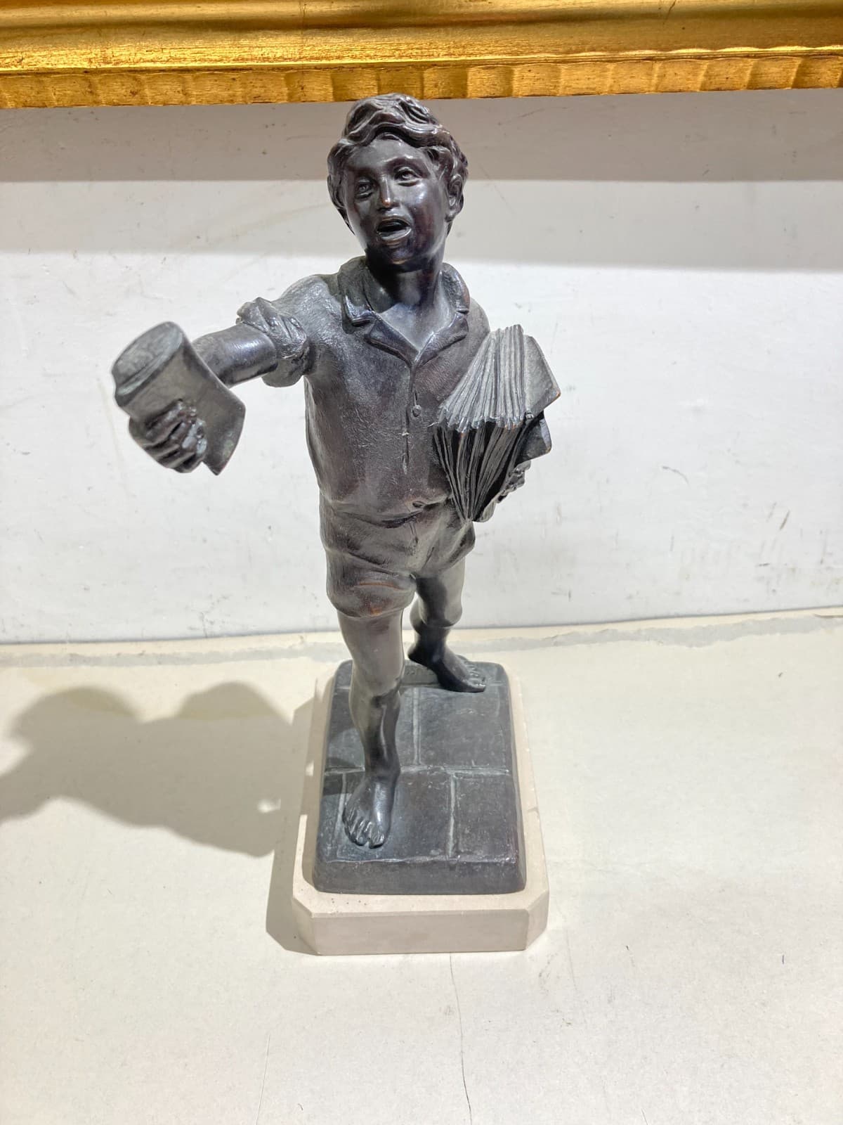 Lo Strillone (venditore Di Giornali). Scultura Decorativa In Metallo Brunito. Napoli