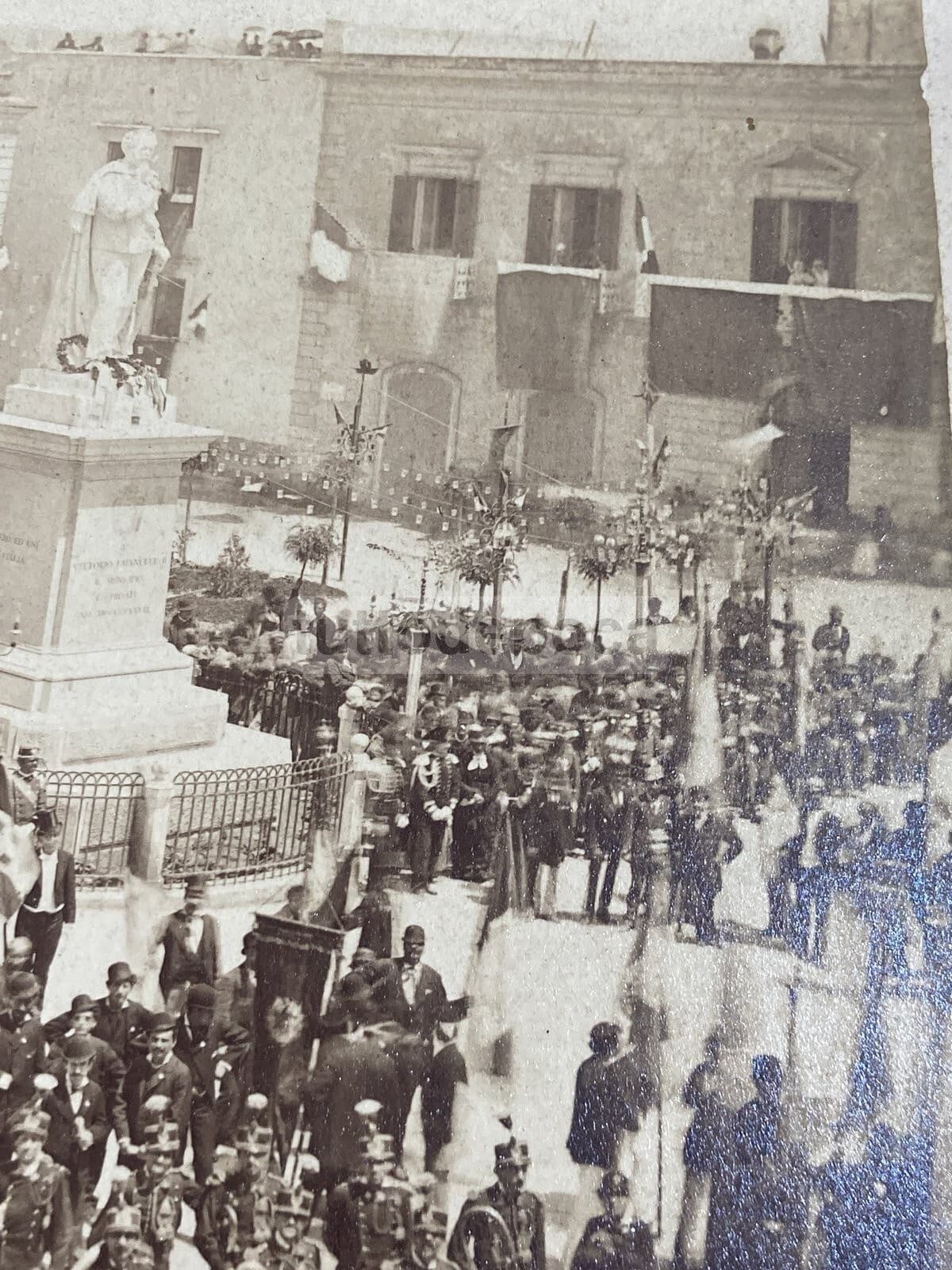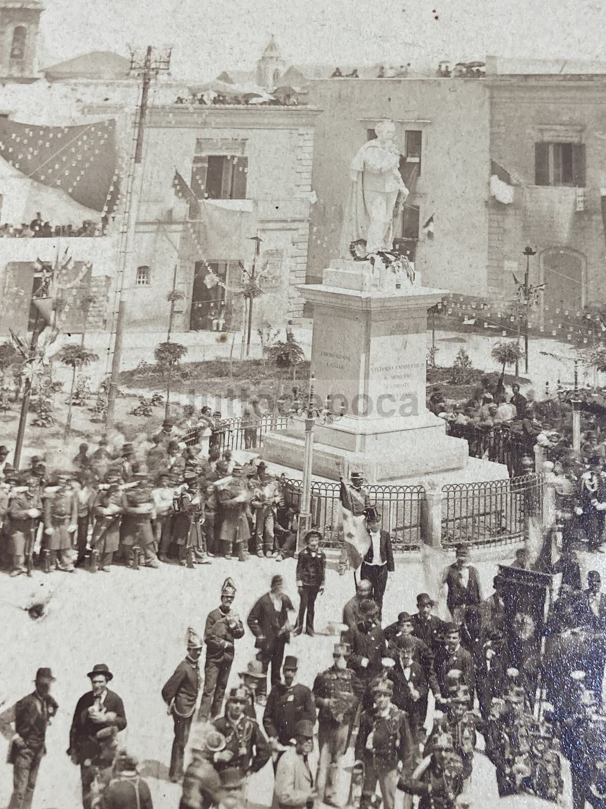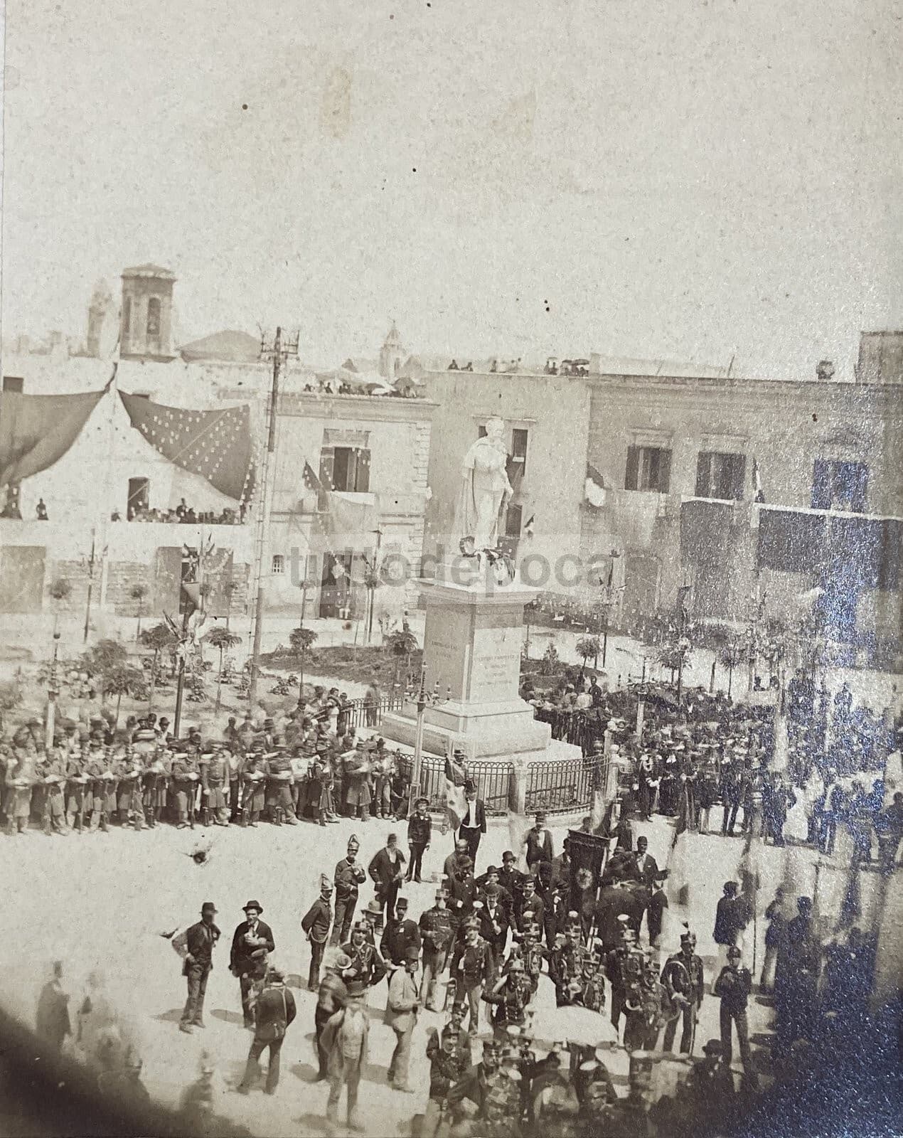 Puglia, Molfetta: Antica Fotografia Originale Del Monumento A Vittorio Emanuele, 1878