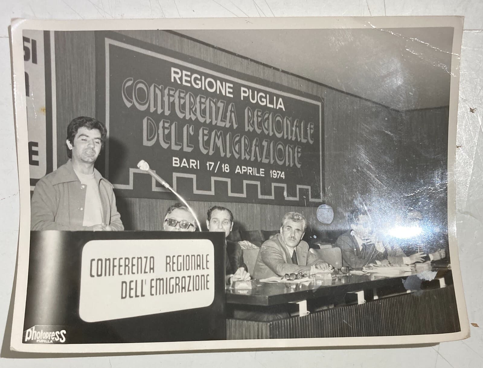 Puglia, Bari, Emigrazione. Conferenza Regionale, Foto d'Epoca, Fotografo Pupilla, 1974