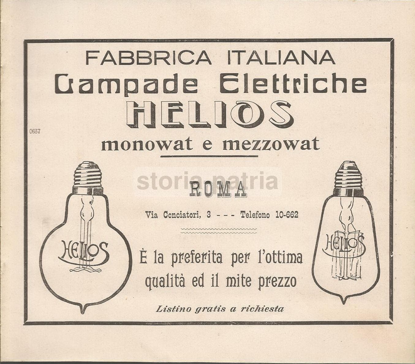 Elettricità: Lampade Elettriche Helios, Roma, Tipografia Marsano, Genova, Pubblicità