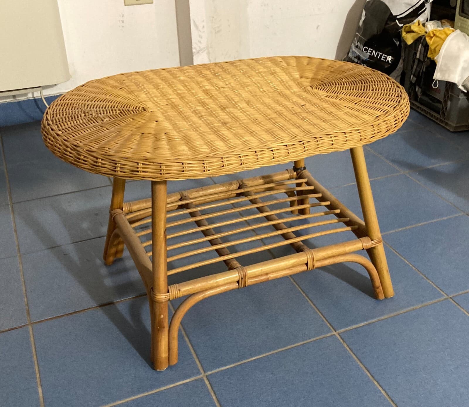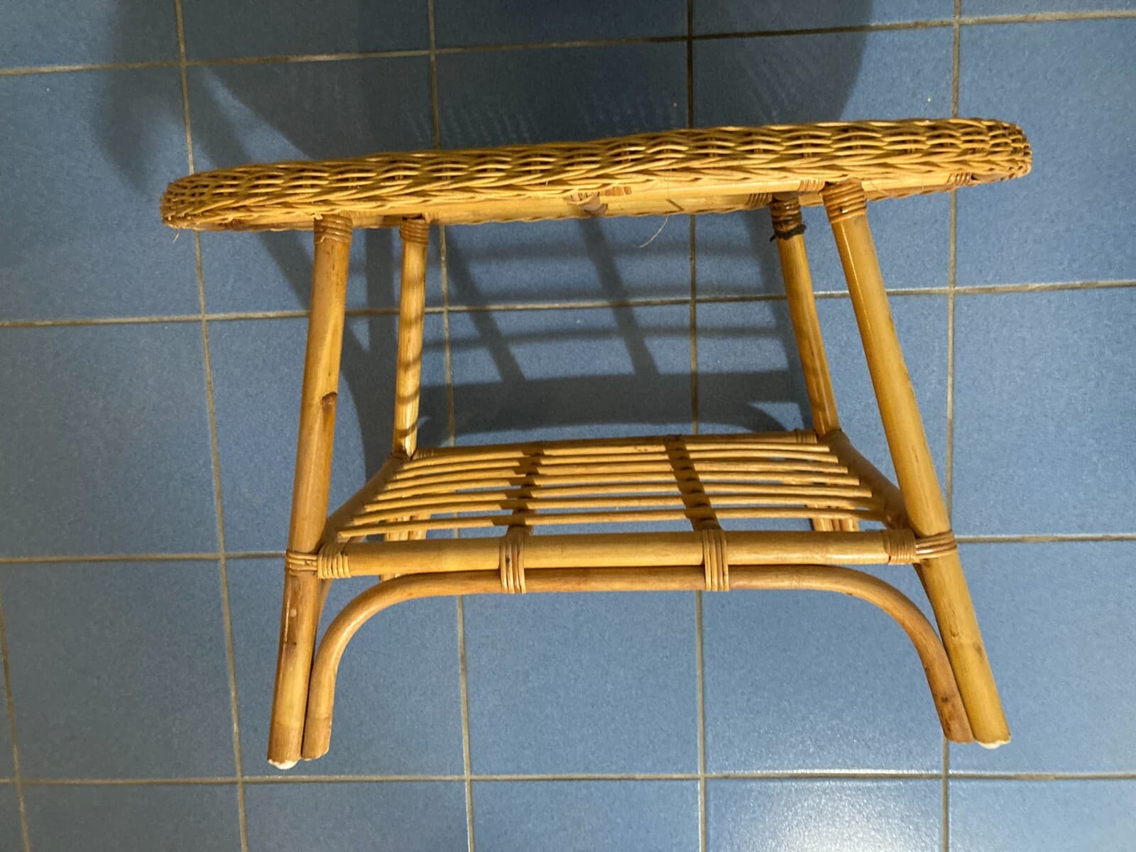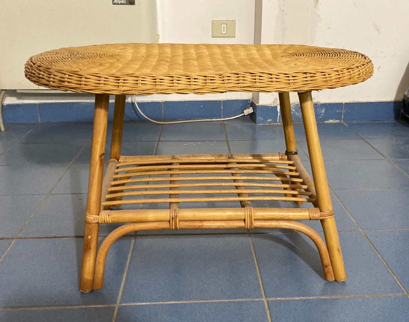 Grazioso Tavolino Ovale In Stile Bambù. Complemento d'Arredo Di Modernariato.
