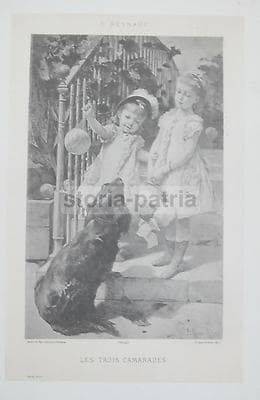 Bambini E Cane, Stampa Di F. Reynaud: Les Trois Camarades
