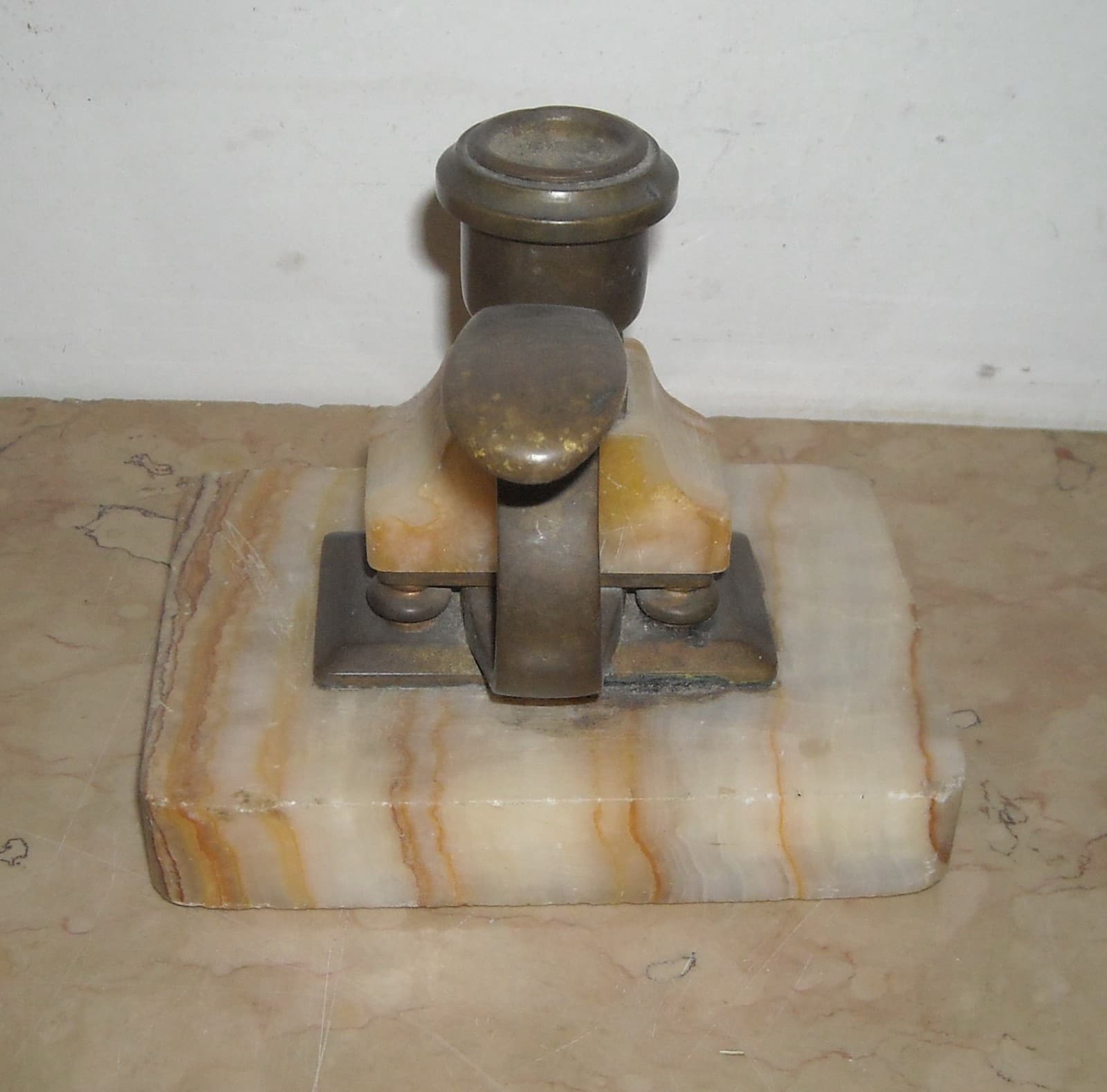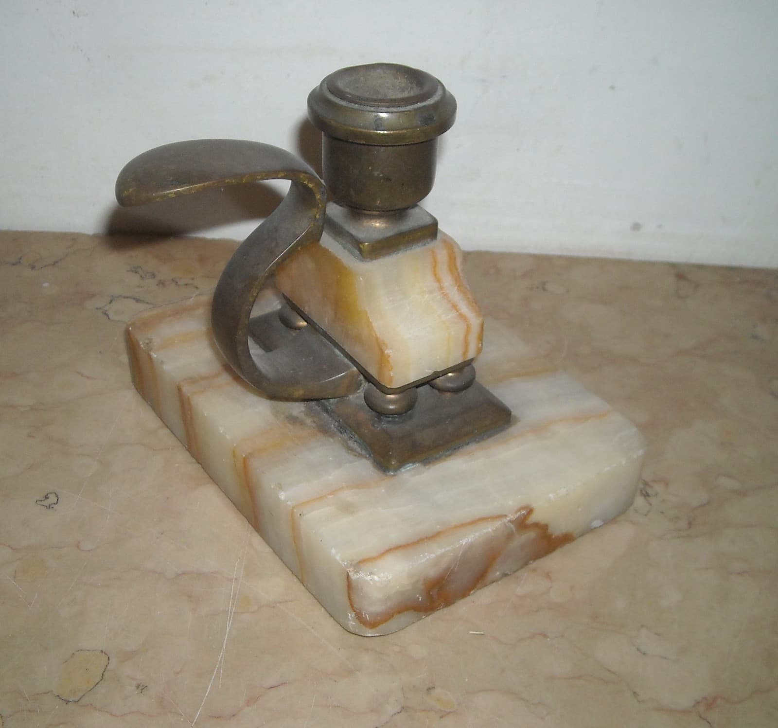 Soprammobile Artistico: Bugia Porta Candela In Marmo E Bronzo