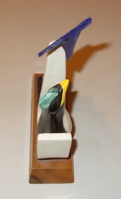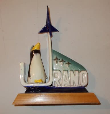 Soprammobile Pubblicitario: Scultura In Ceramica Con Pinguino E Aereo