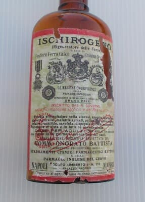 Napoli, Medicina Farmaceutica: Ischirogeno Battista, Bottiglia Pubblicitaria E Araldica