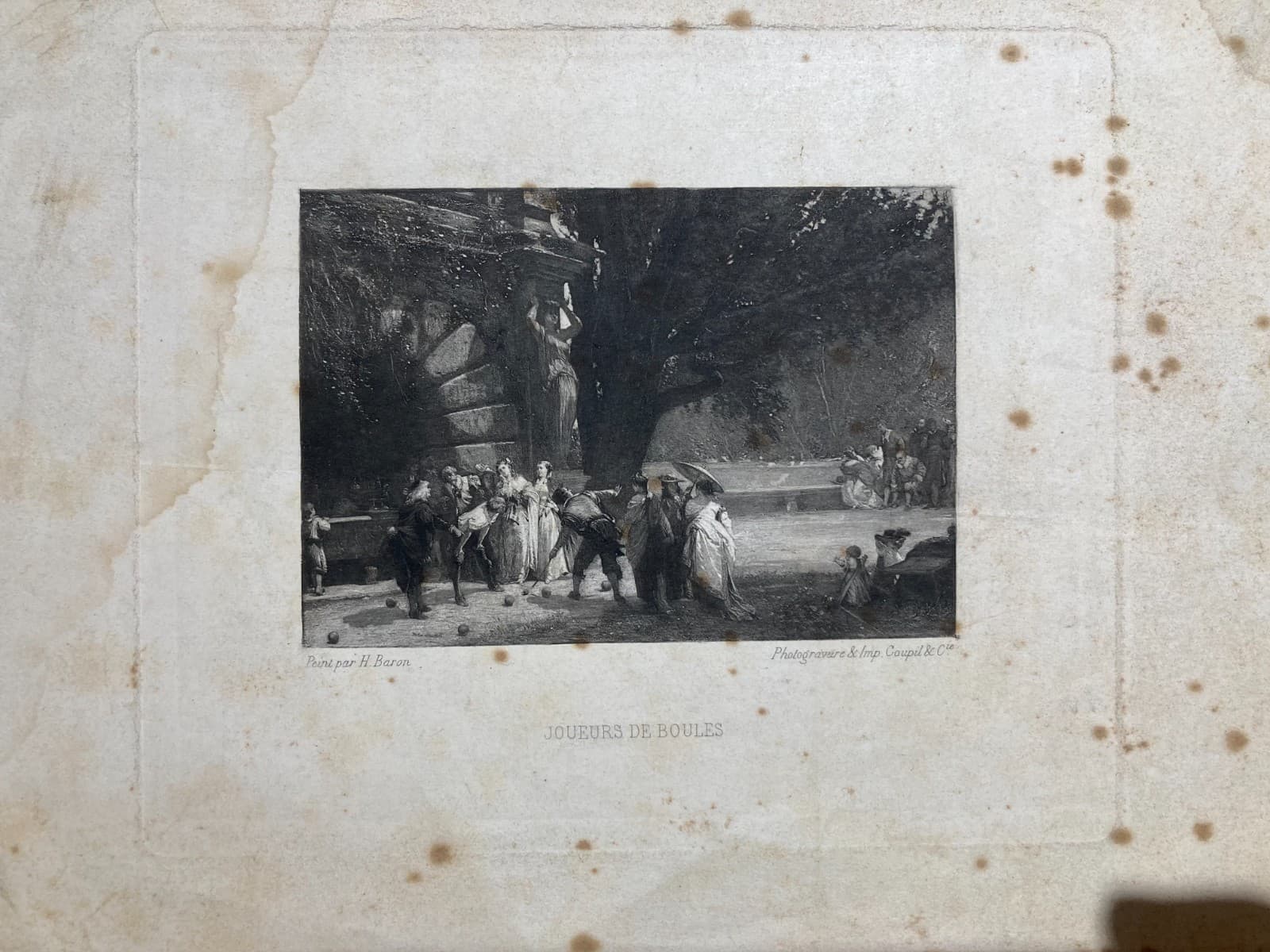 Gioco Delle Bocce Antica Stampa Artista Baron Suggestiva Animata Veduta Goupil