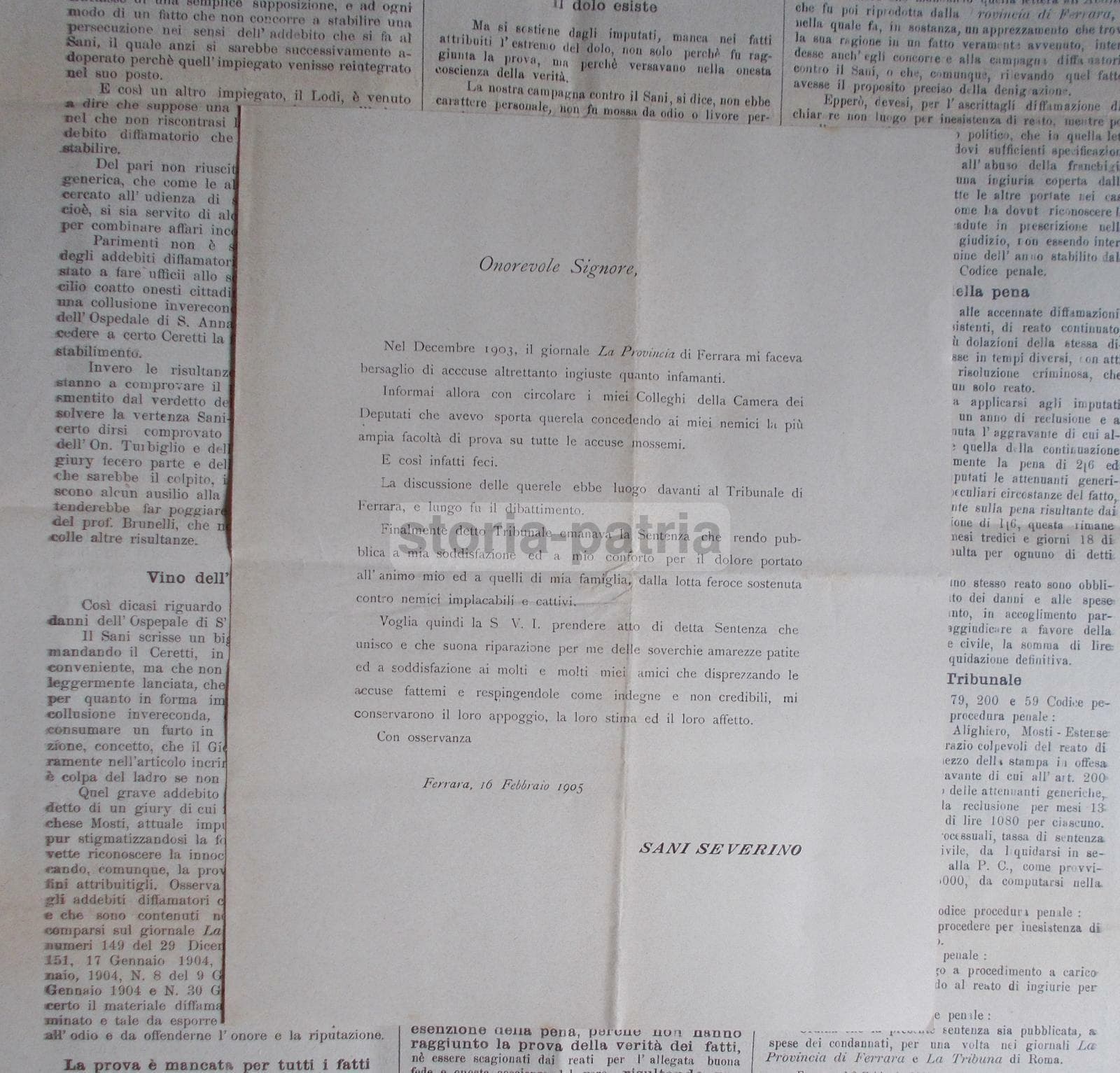 Ferrara: Deputato Sani Processo Giuridico Trotti, Valieri, Boscolo, Castelli (1905)