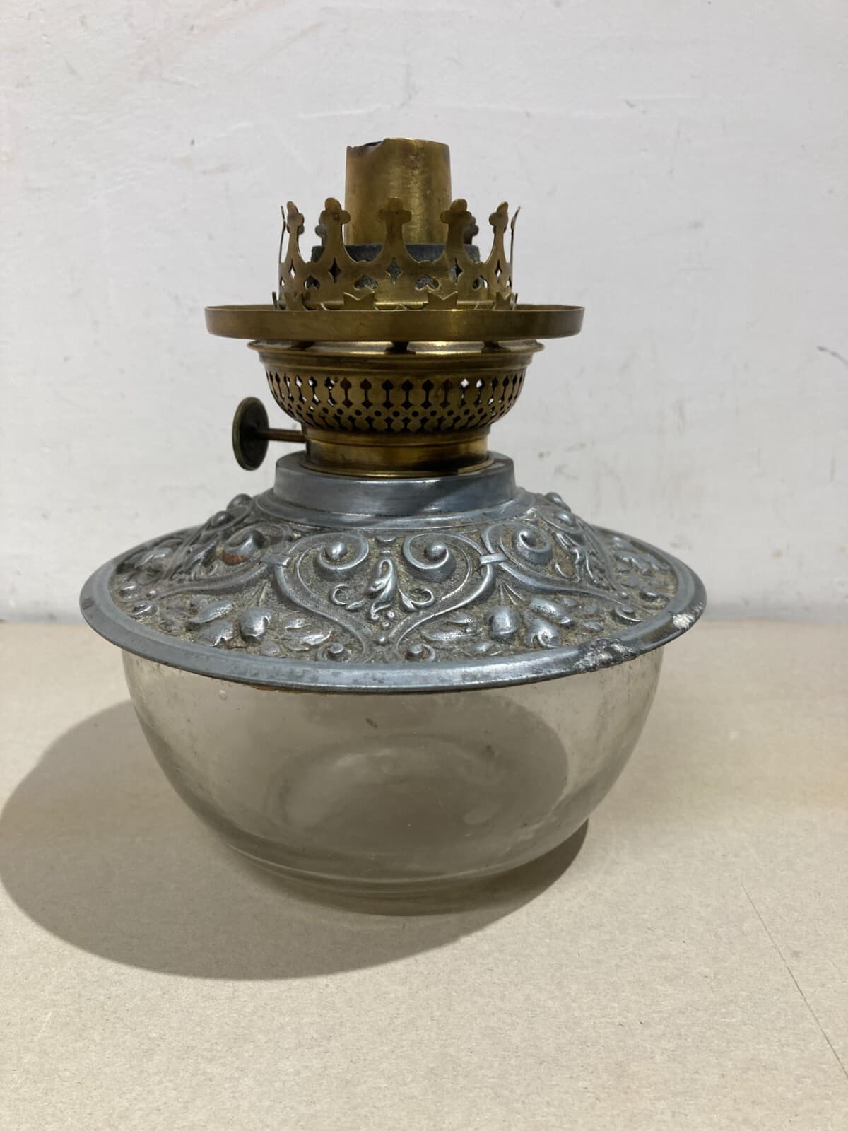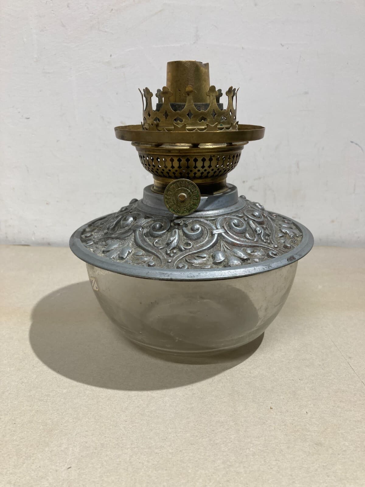 Antica Lampada In Vetro Con Artistica Copertura E Decori In Rilievo, Santini, Ferrara