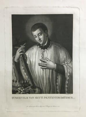 Arte Popolare Devozionale S. Luigi Gonzaga Antica Acquaforte Napoli Biondi Scafa