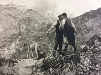 Arte Antica Incisione: Vittorio Cavalleri, Idillio, Veduta Pastorale Montana, Chessa