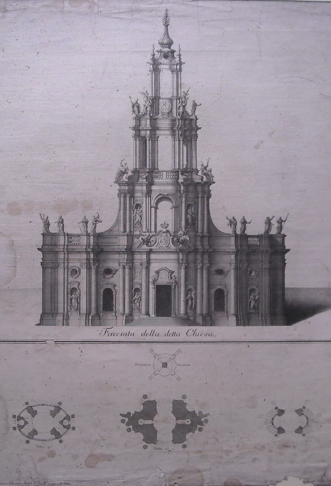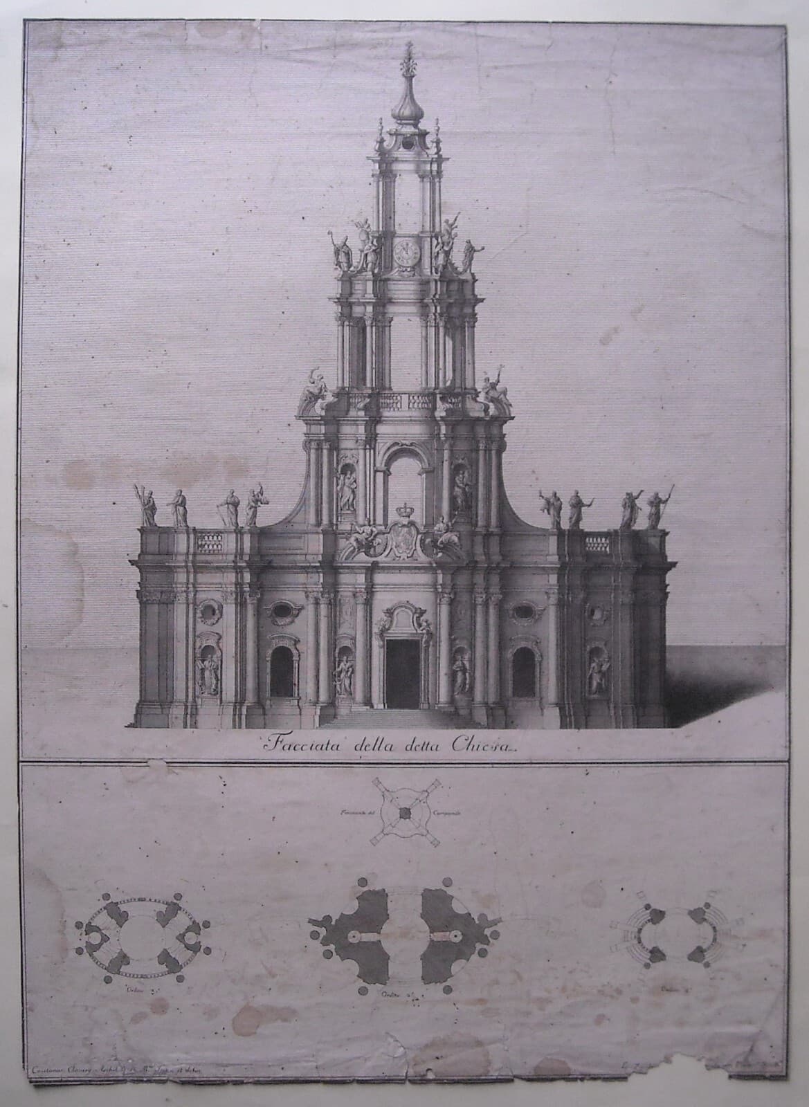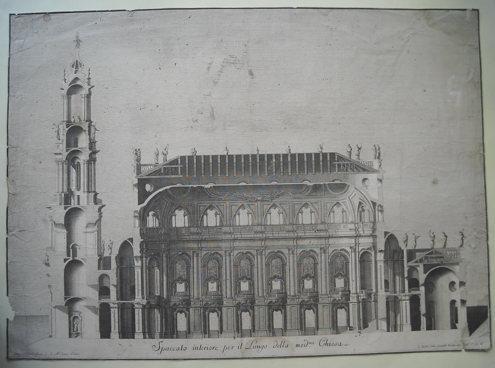 Architettura: Prospettive Della Katholische Hofkirche Di Dresda. Architetto Gaetano Chiaveri, Incisore Lorenzo Zucchi