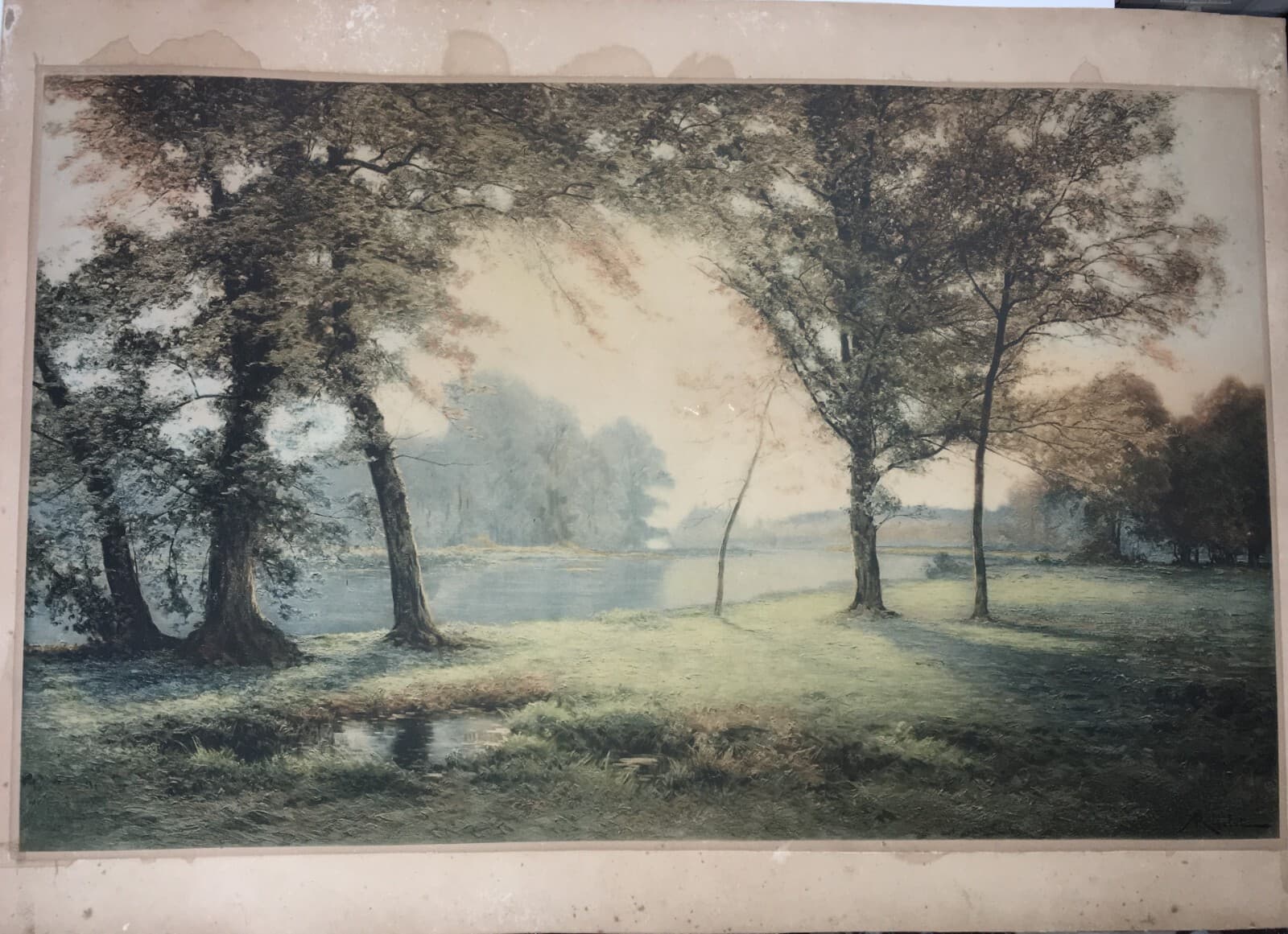 Veduta Paesaggistica Lacustre: Grande Opera Grafica Di Albert Gabriel Rigolot, 1916