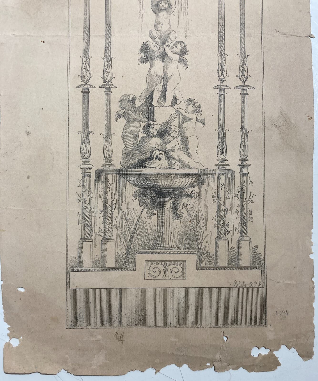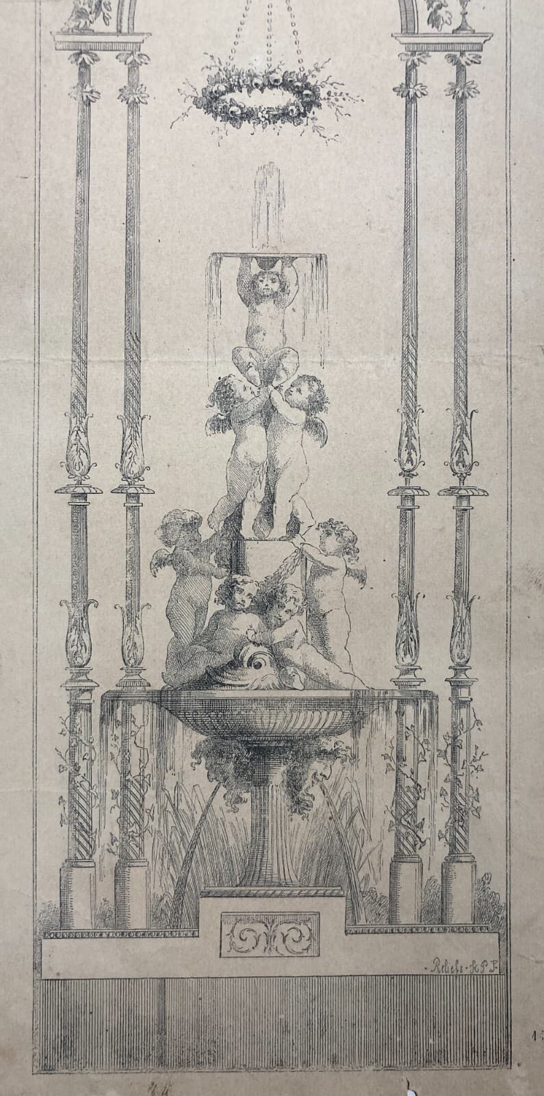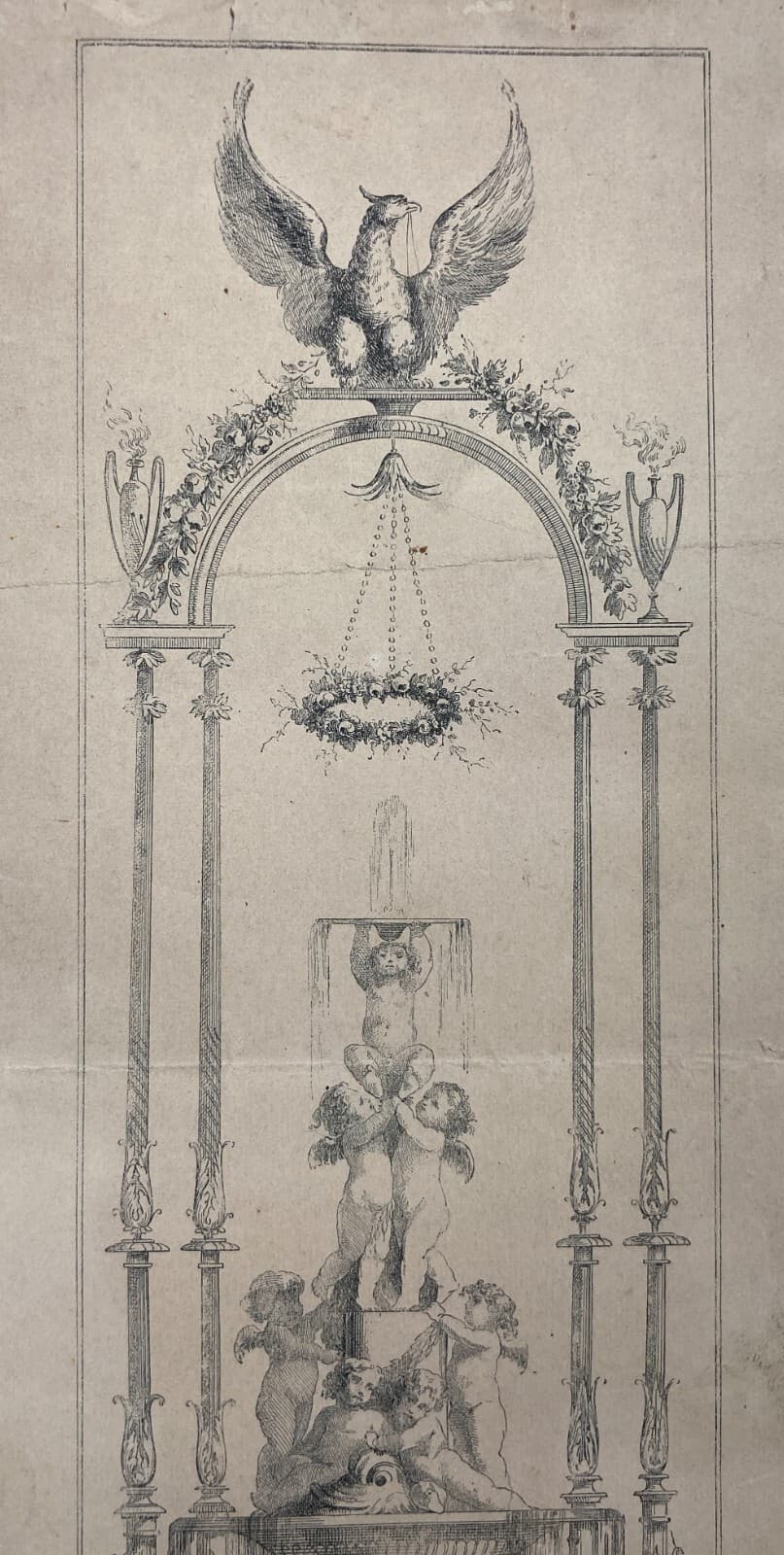 Antiche Arti Decorative: Fontana Architettonica Con Angioletti E Allegorie