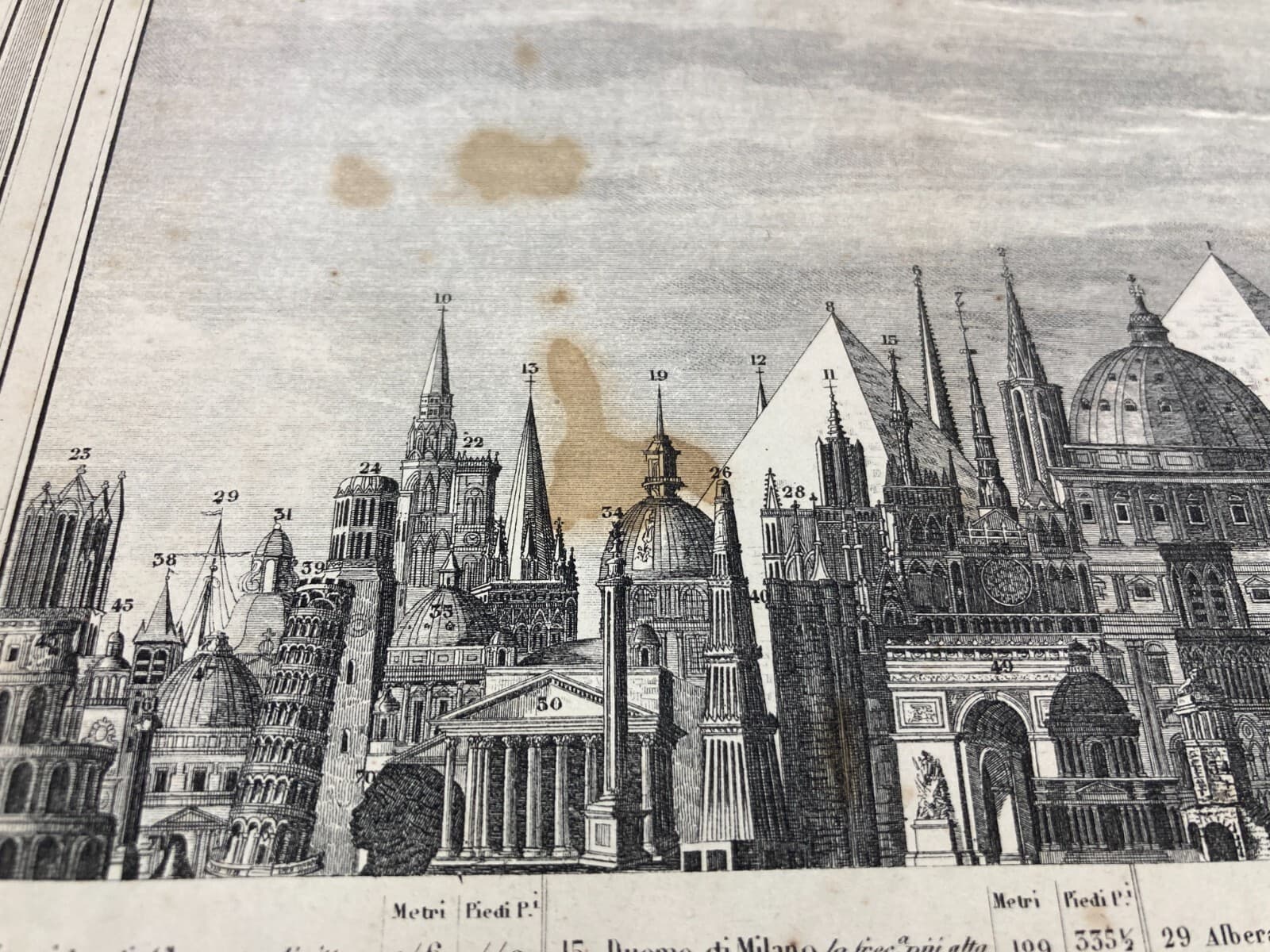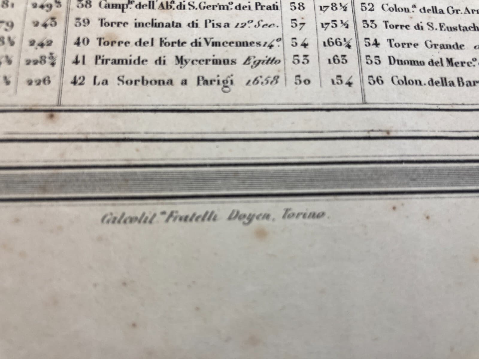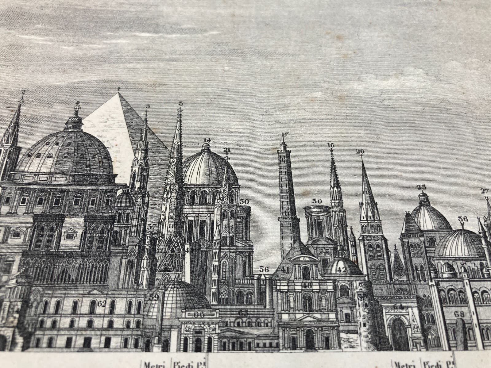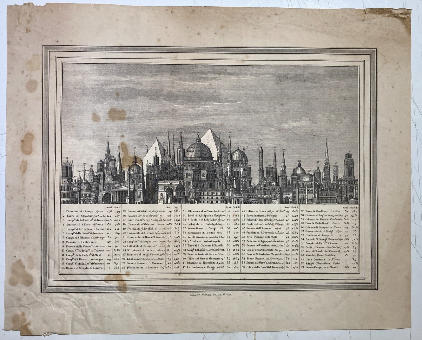 Altezze Dei Maggiori Monumenti: Piramidi, Torri, Campanili, Cattedrali. Stampa Dell'800