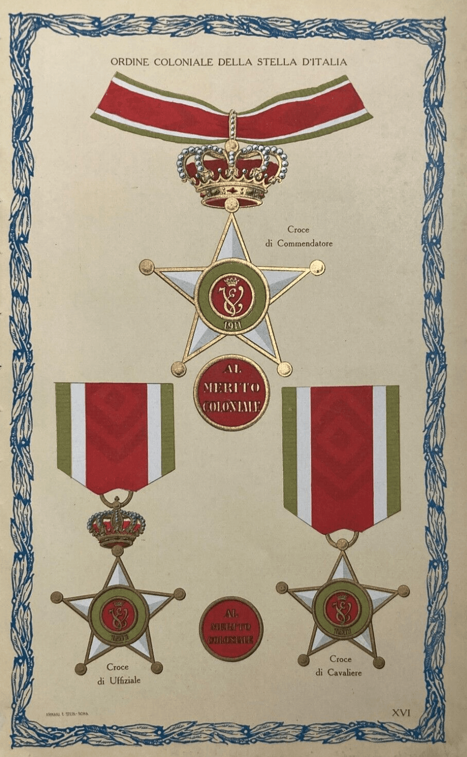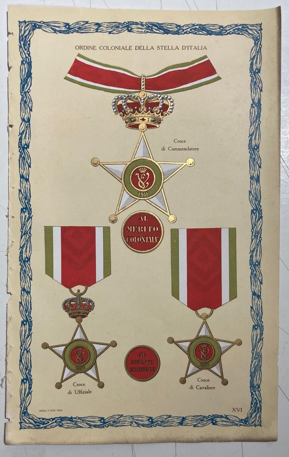 Araldica Savoia Colonie Ordine Coloniale Della Stella d'Italia Antica Stampa