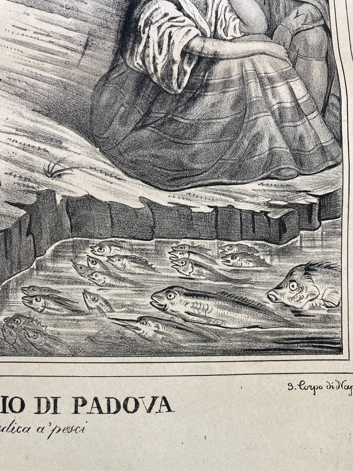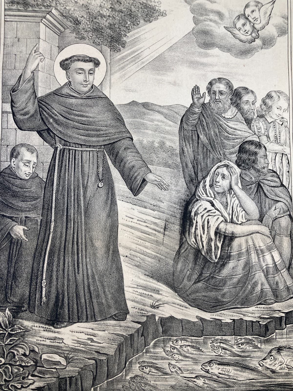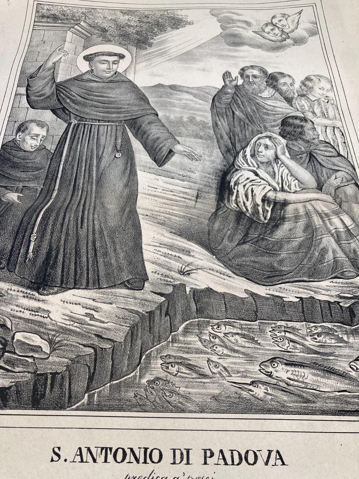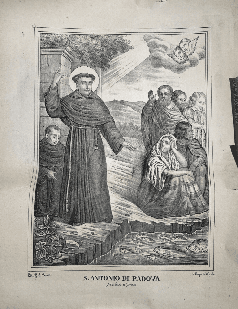 Sant'Antonio Di Padova Predica Ai Pesci. Antica Stampa Popolare Devozionale Di Lo Santo