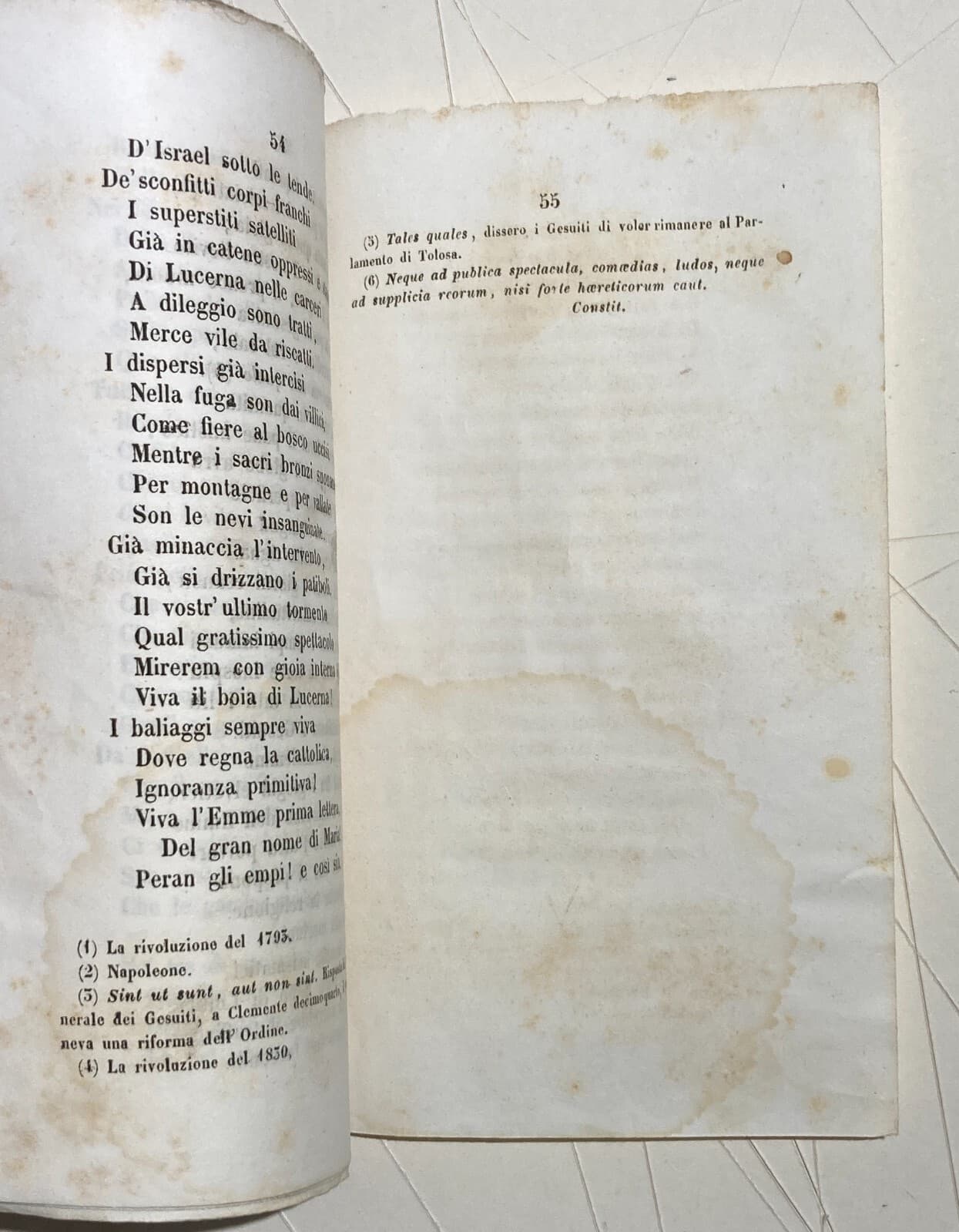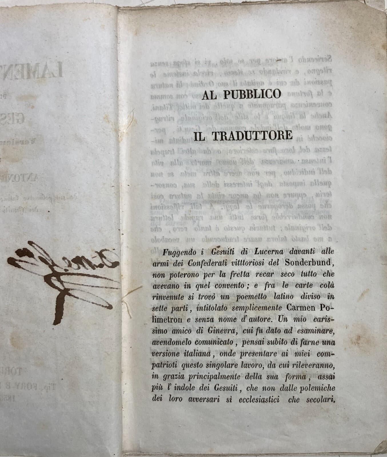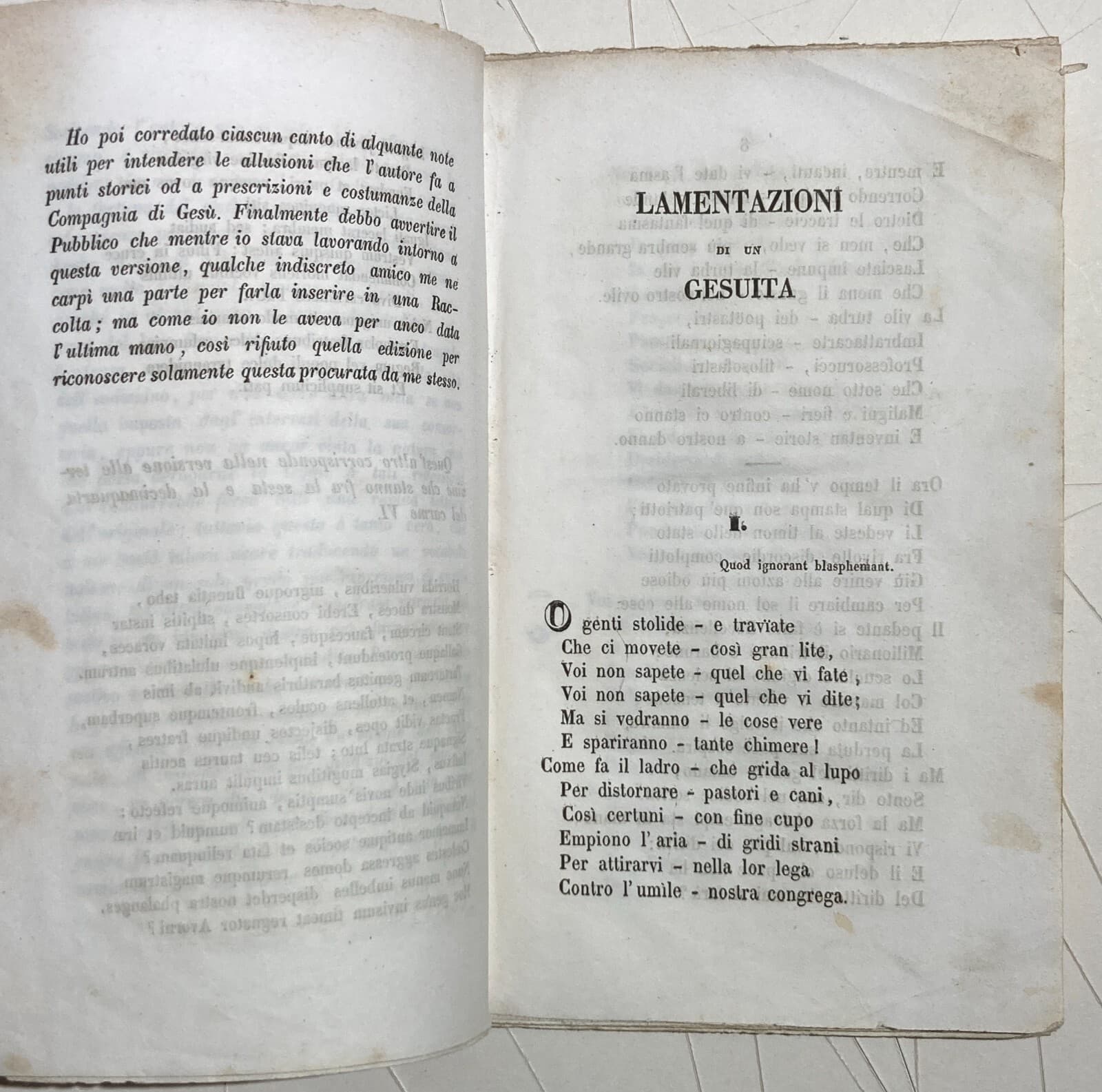 Compagnia Di Gesù. Lamentazioni Di Un Gesuita. Antonio Caccia. 1850