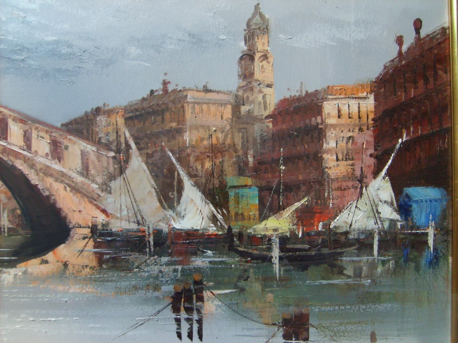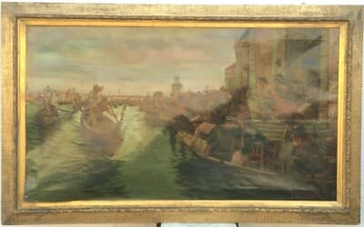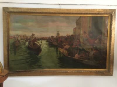 Arte Decorativa Del '900: Venezia, Veduta Del Canal Grande Dipinto Ad Olio