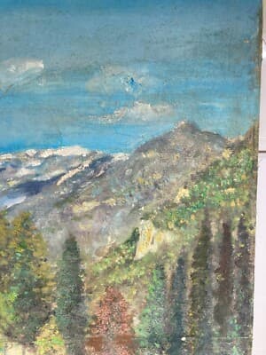 Athos Brioschi, Paesaggio Alpino Con Figure, Olio Su Cartone In Cornice Ebanizzata