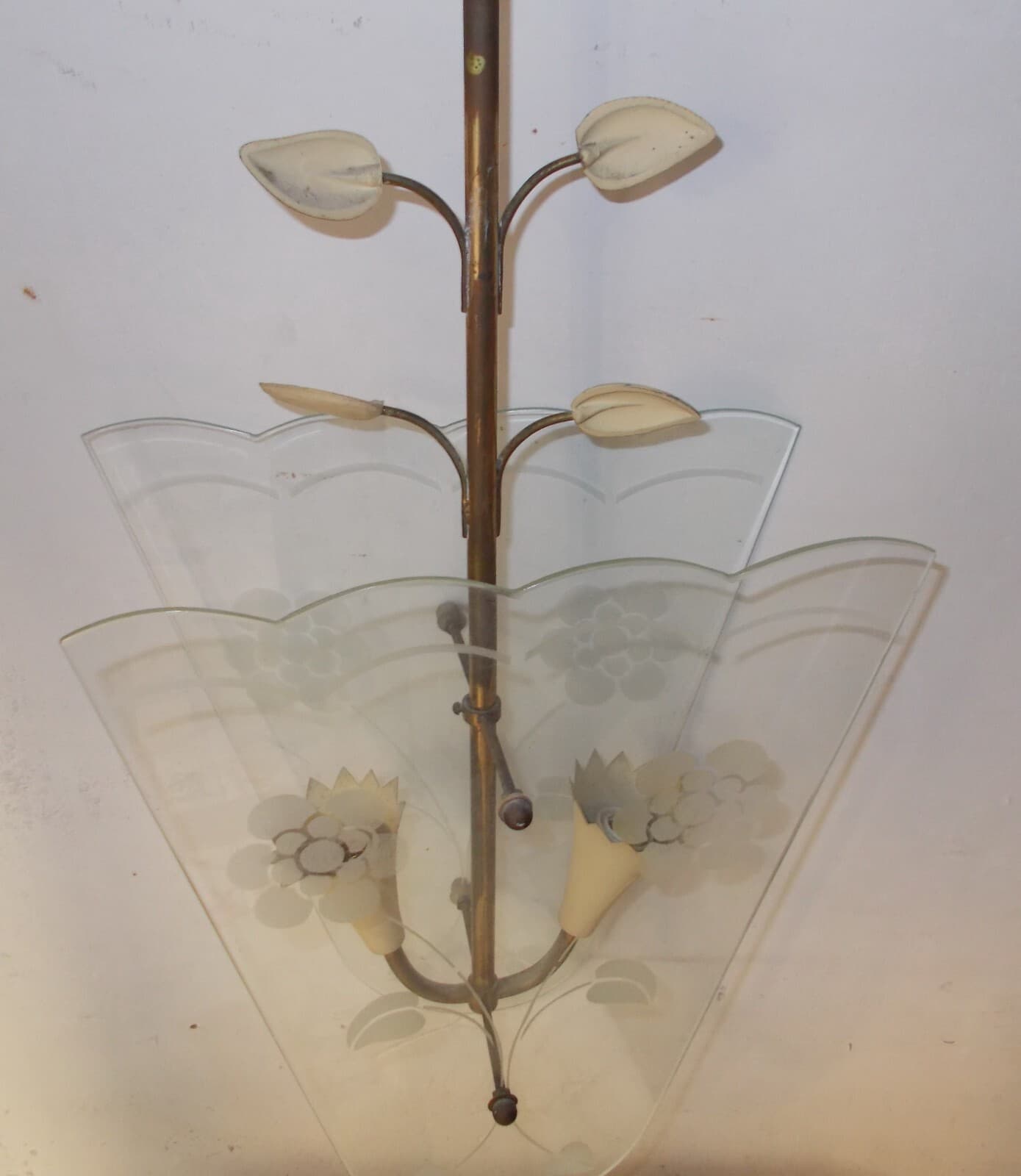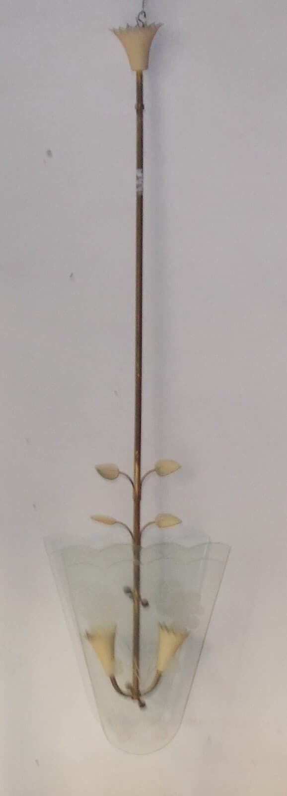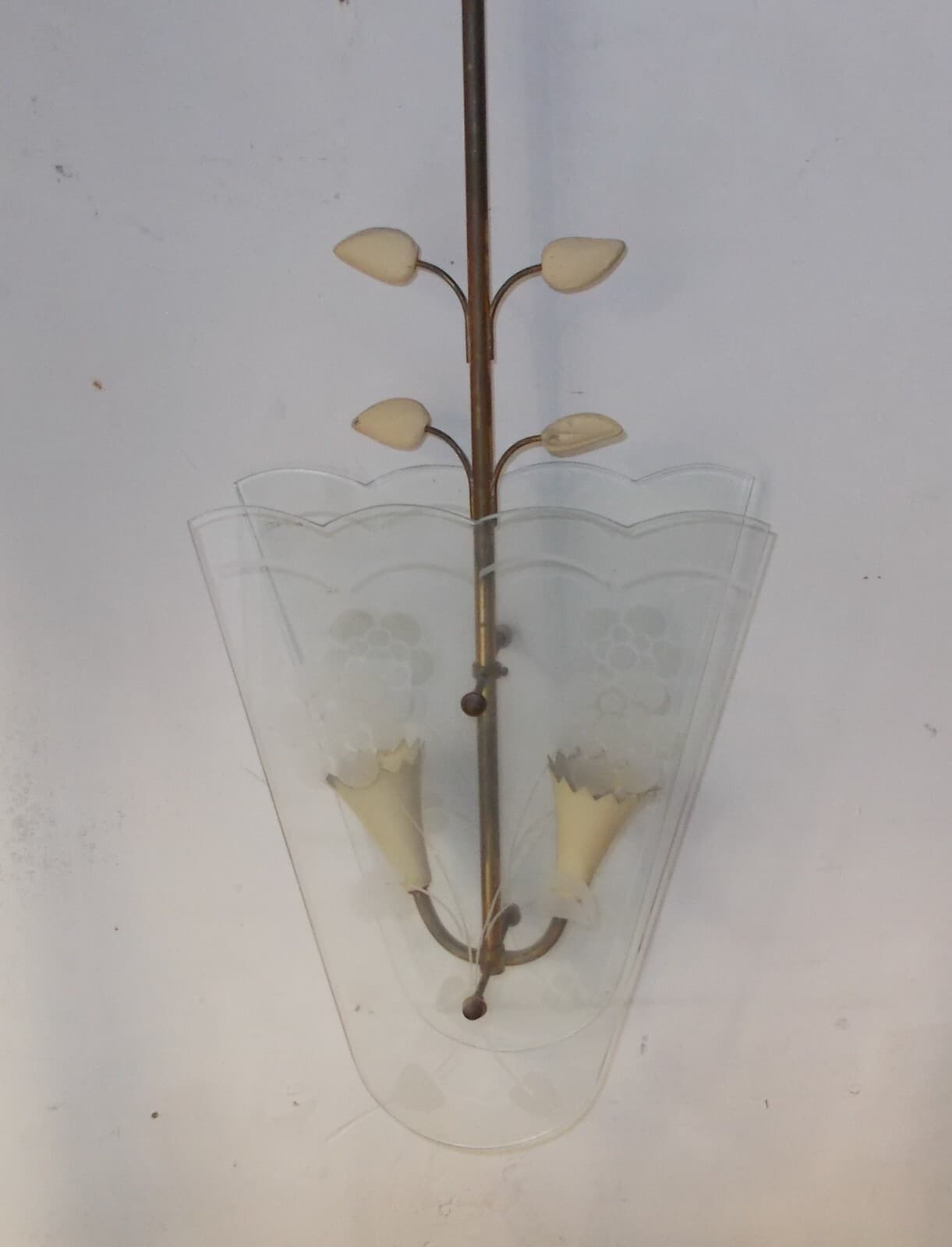 Lampadario A Sospensione In Vetro Inciso E Ottone