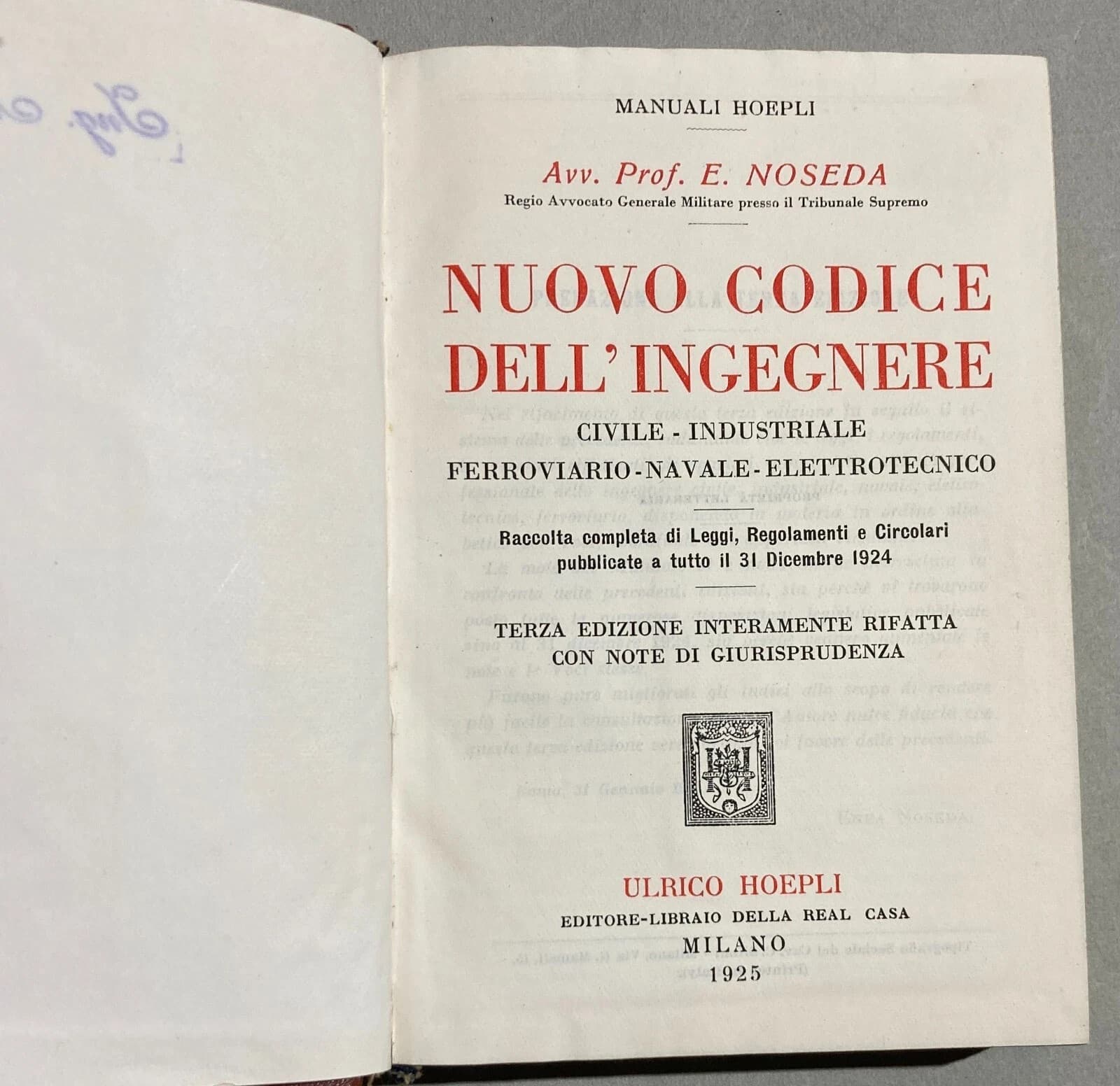 Giuridica, Ingegneria, Idraulica, Navigazione, Bonifiche, Ferrovie, Igiene, Hoepli, 1925
