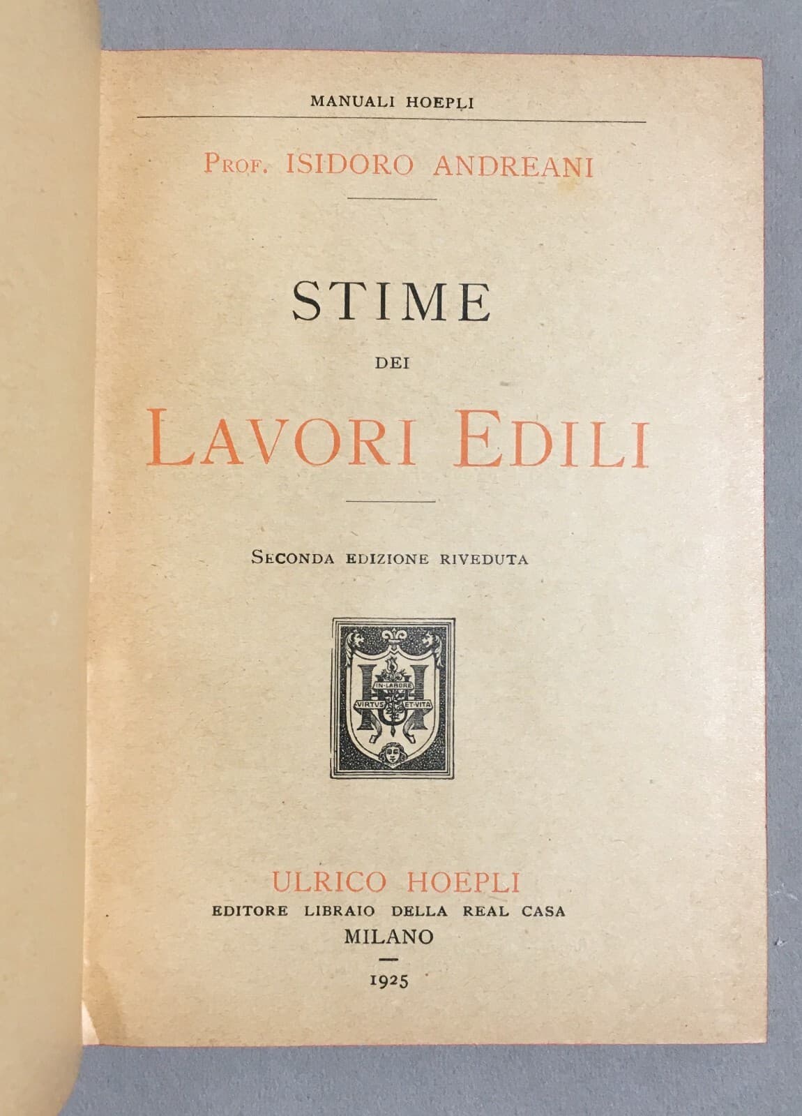 Ingegneria, Edilizia, Tecnica, Costruzioni: Stime Dei Lavori Edili Andreani Hoepli