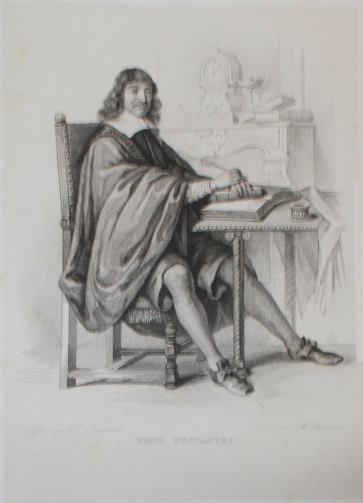 René Descartes, Antico Ritratto: Incisione Originale Di Baudran Da Jacquand
