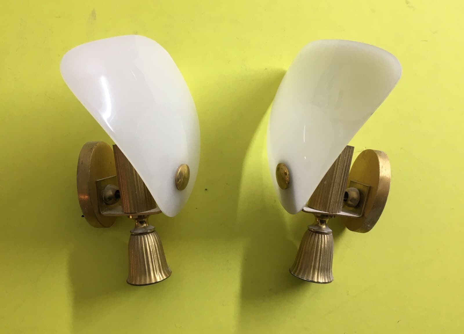 Arti Decorative Del '900 Coppia Di Appliques Ventole In Vetro Opalescente Anni '60