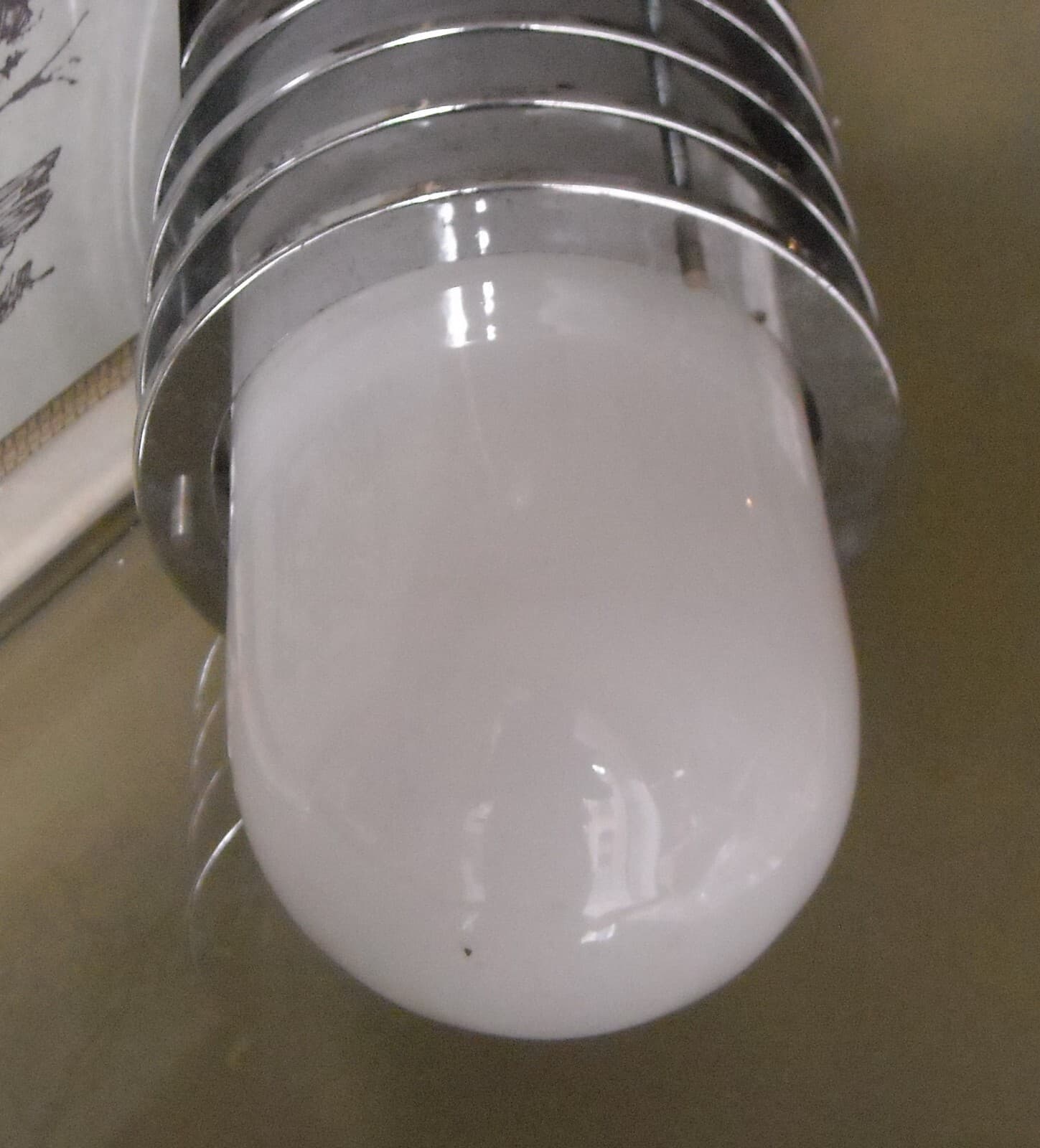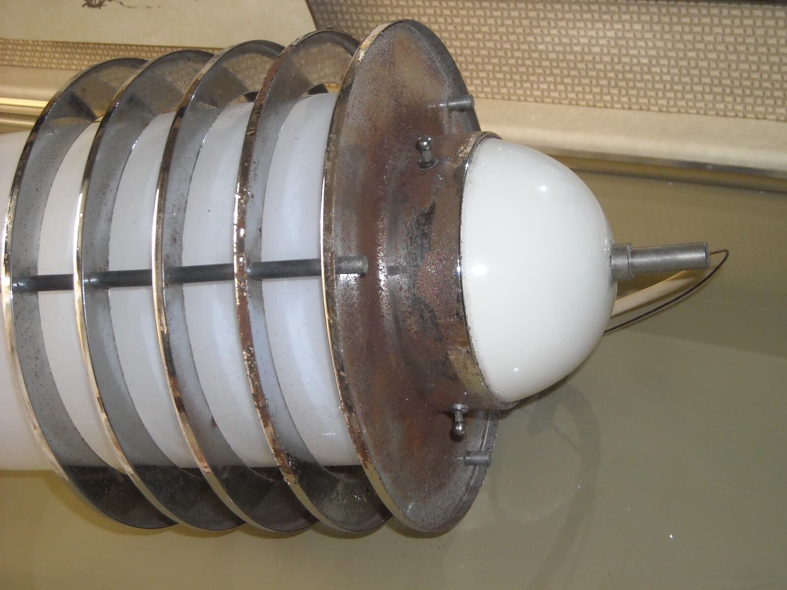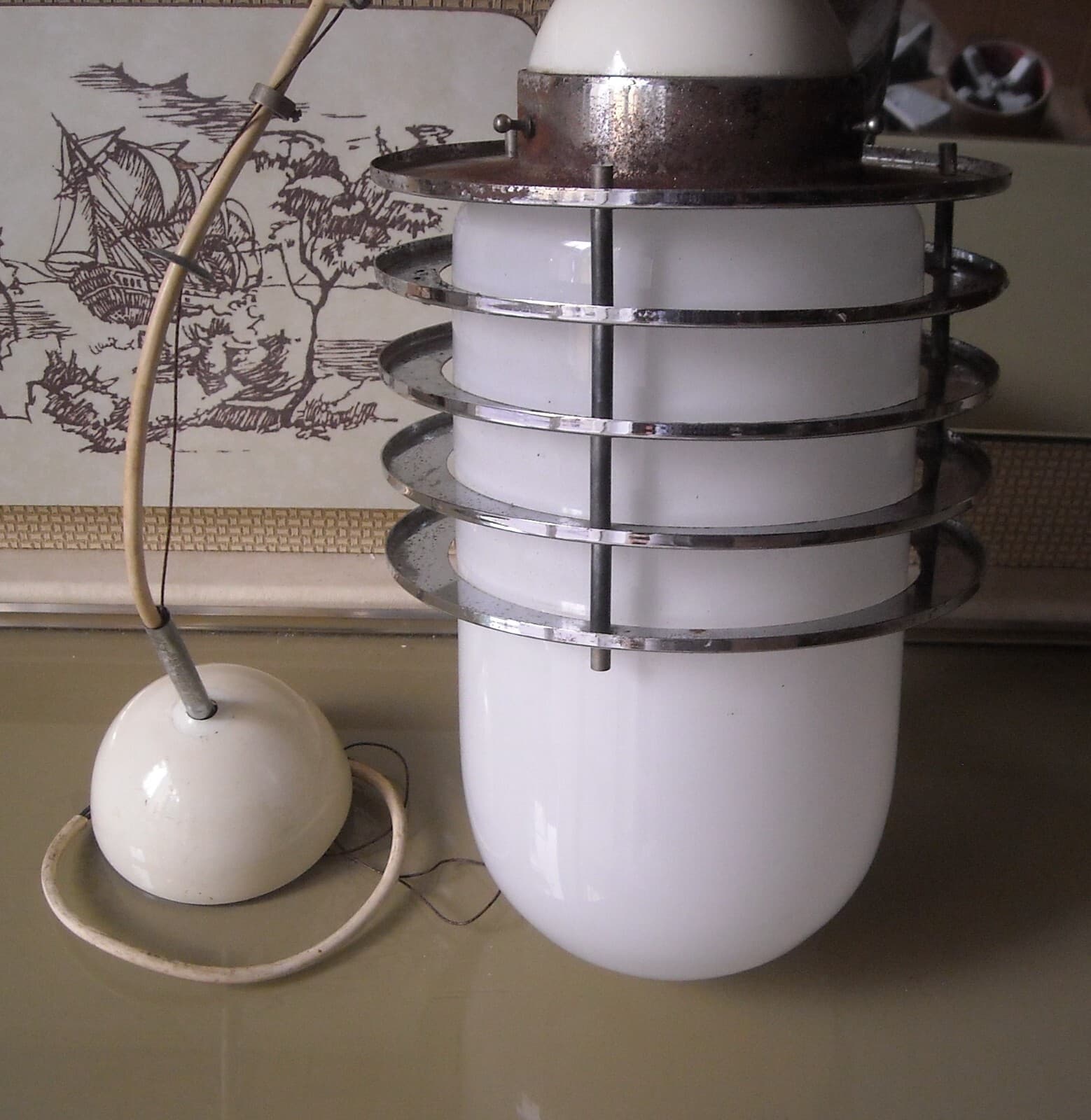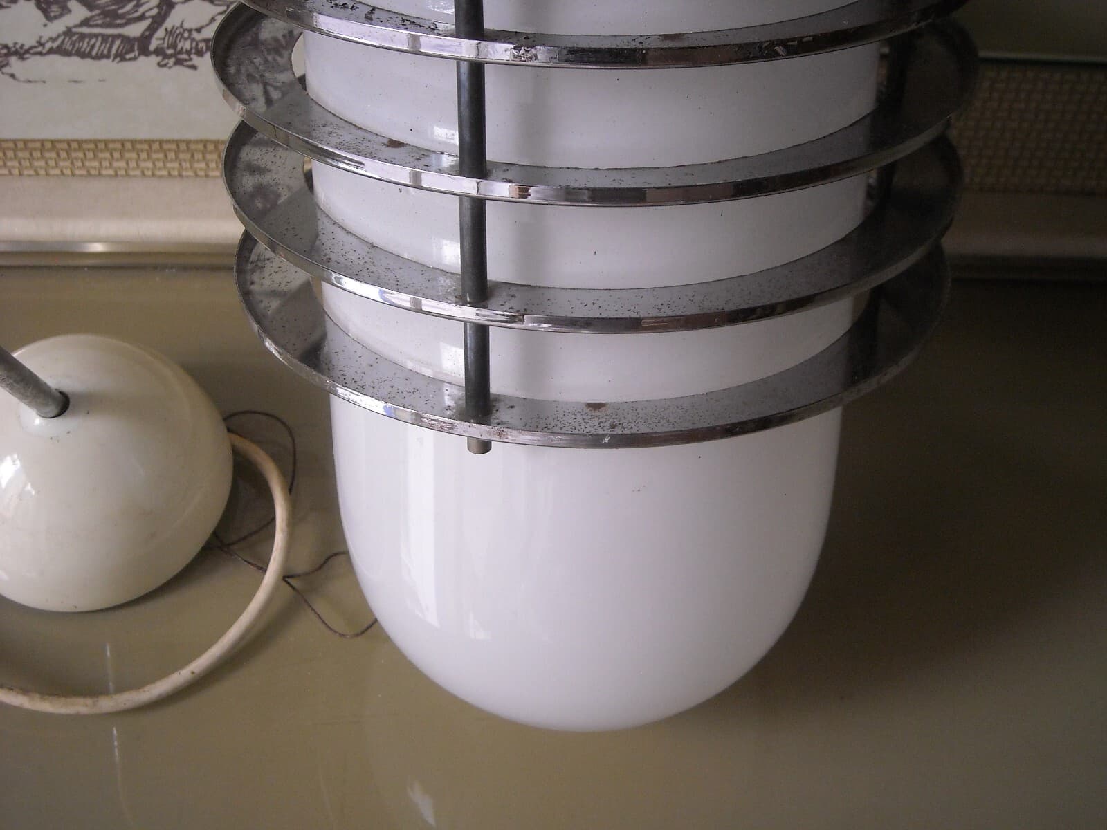 Lampada Da Soffitto In Vetro Opalescente E Metallo Cromato, Stile Fontana Arte, 1950 1970 Circa