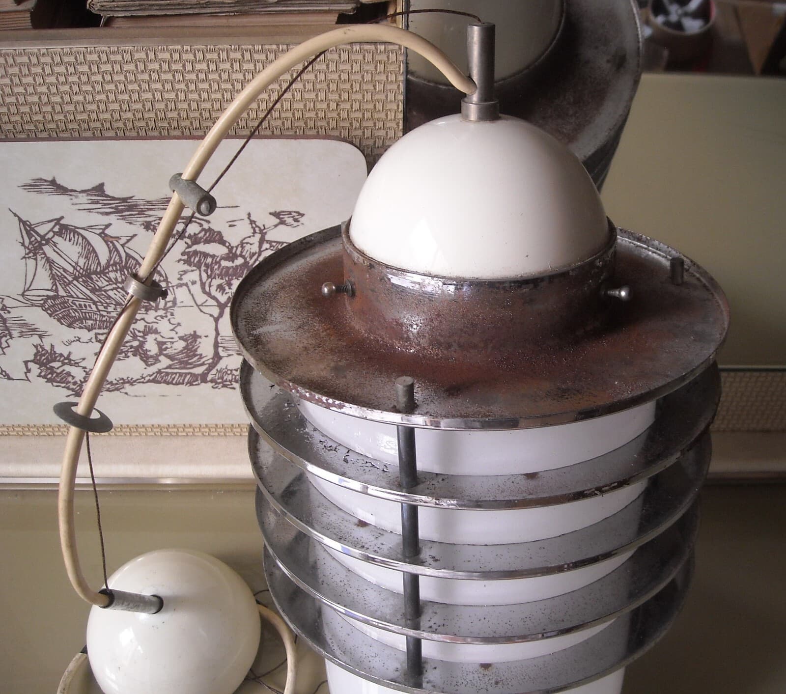 Modernariato: Lampadario Di Design Rosso, Lampada d'Epoca